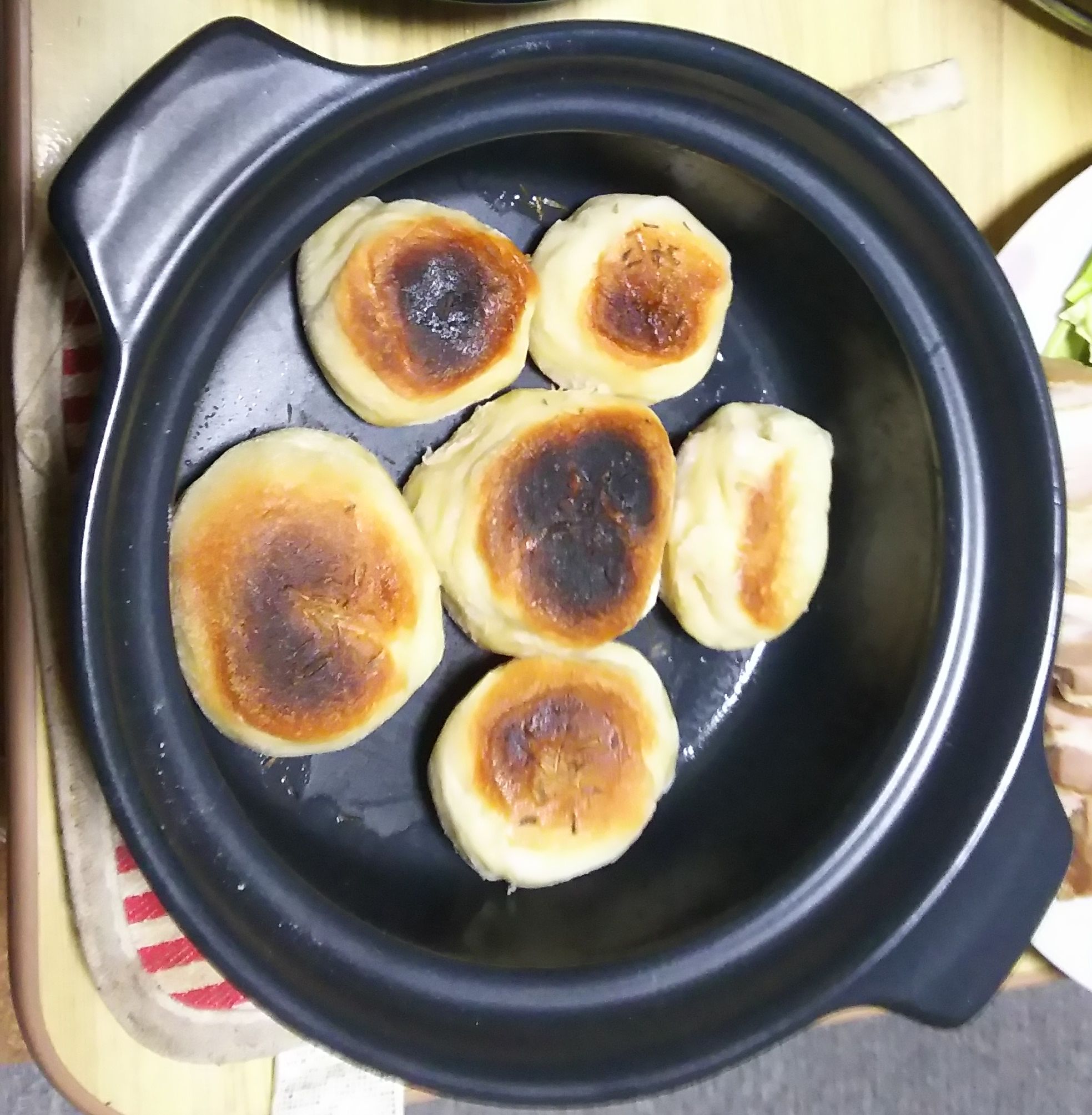この試作で土鍋パンの状況が理解出来ました。土鍋の底板はそれなりの高温になるのですが、側面と蓋の部分は加熱直後なら高温にはほど遠いです。その為にパン生地の水分がここに析出するので、パンを焼く環境としては良くないでしょう。レシピもパン生地を裏返す工程を入れており、この問題への対処でした。
