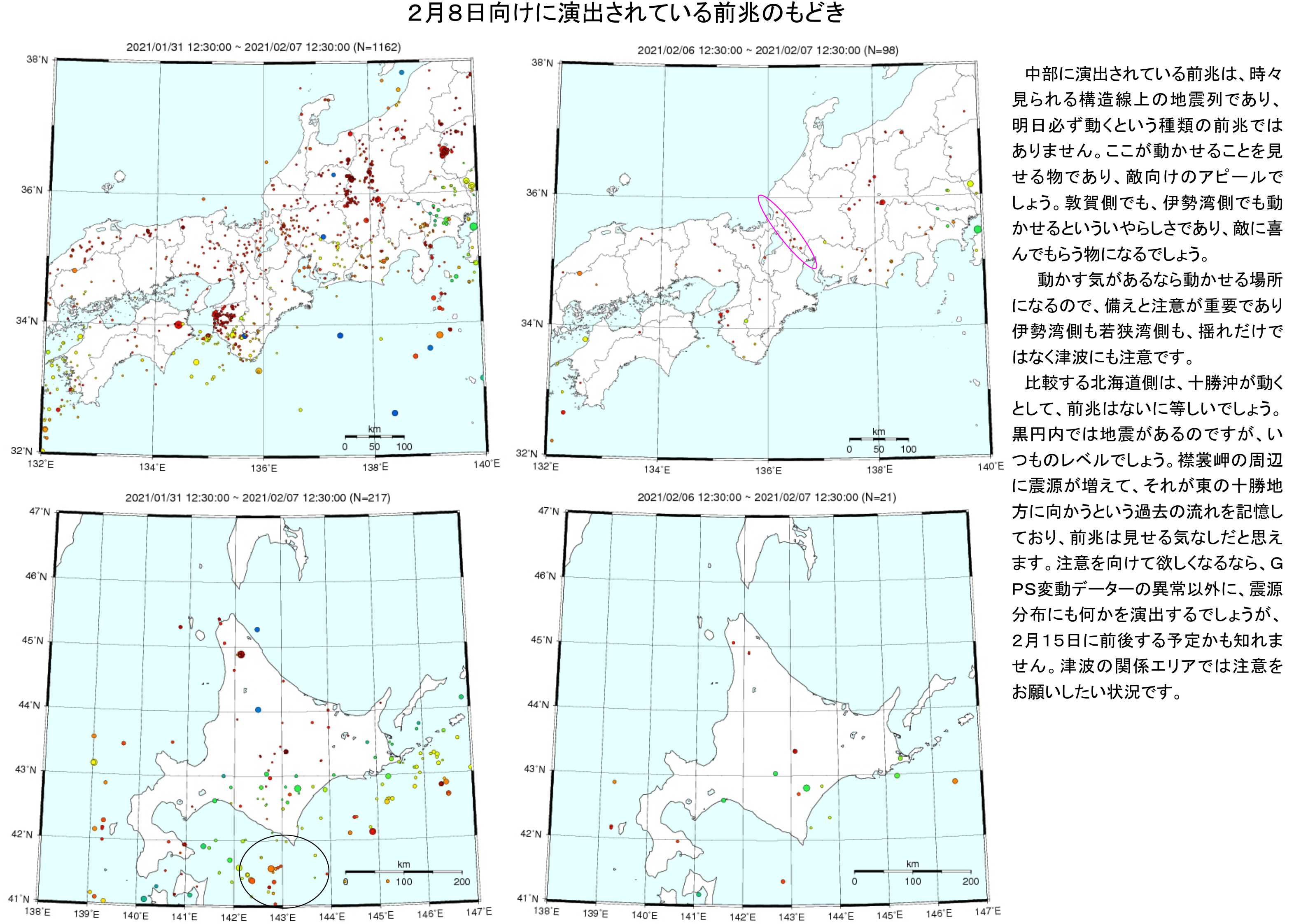 注意を向けて欲しくなるなら、進展中のGPS変動データーの異常以外に、震源分布にも何かを演出するでしょうが、2月15日に前後する予定かも知れません。津波の関係エリアでは注意をお願いしたい状況です。