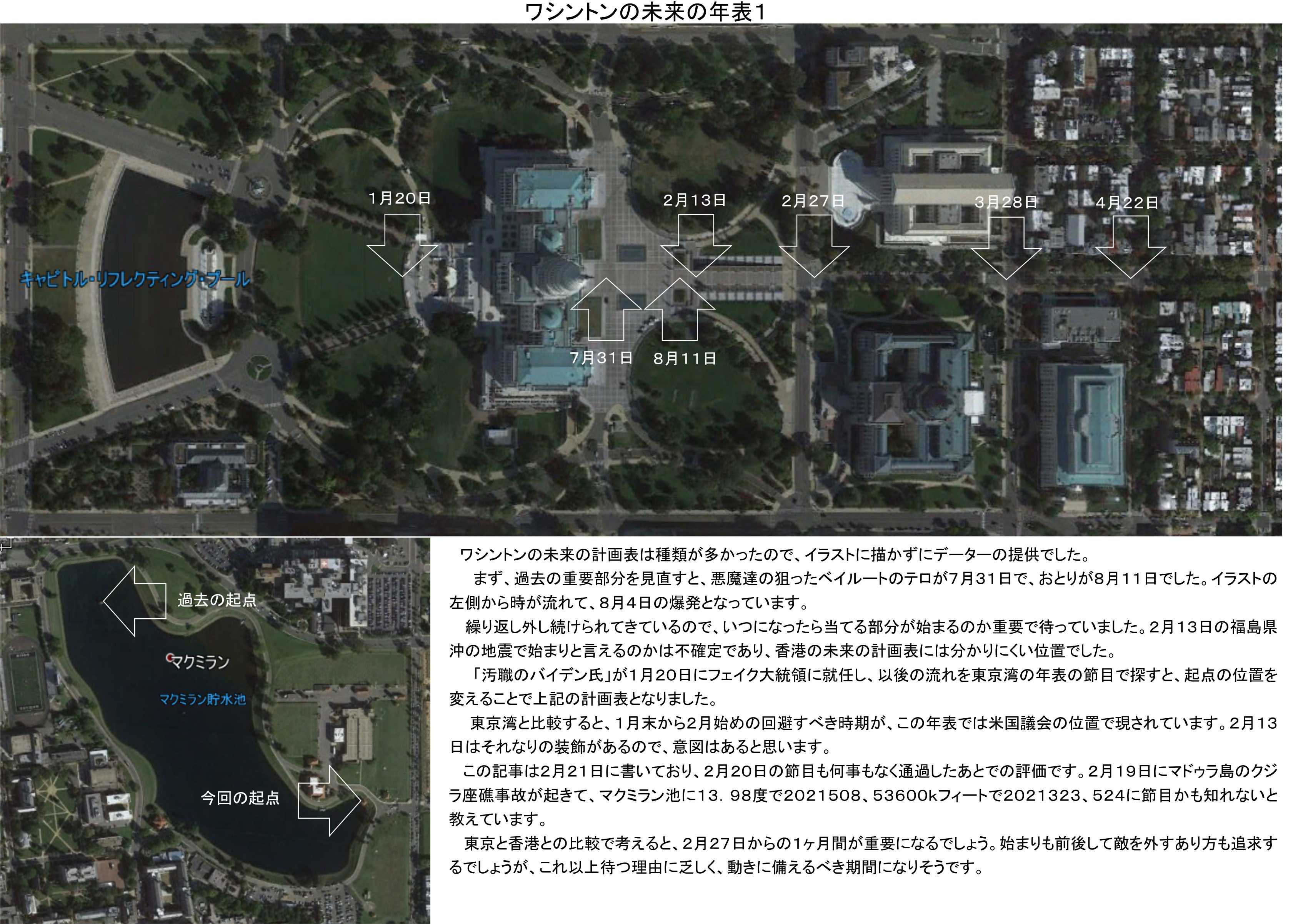 東京湾の未来の計画表に修正はないのですが、2月20日の節目に動きがなかったことと、2月19日にマドゥラ島のクジラ座礁事故が起きたことで、続きへの注意を促していると判断しています。この記事では、香港とワシントンの未来の計画表の説明です。