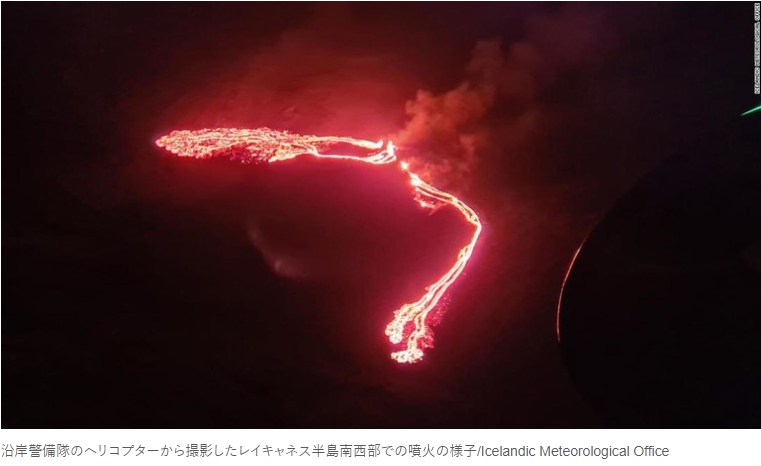 (CNN) アイスランド気象局(IMO)は19日、レイキャネス半島南西部で火山の噴火が報告されたと明らかにした。