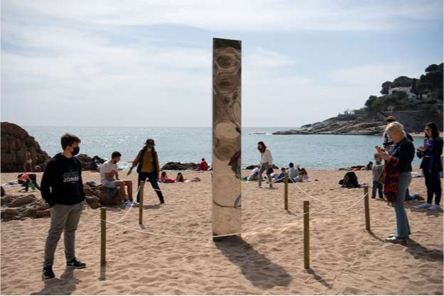 スペインのビーチにも…謎の「モノリス」