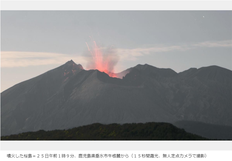 桜島は25日午前1時9分ごろ、噴火し、火口から約1800メートルの範囲で火砕流が確認された。気象庁によると、平成28年2月以降、火口から2キロが立ち入り禁止となっている。県警によると、人的被害は確認されていない。