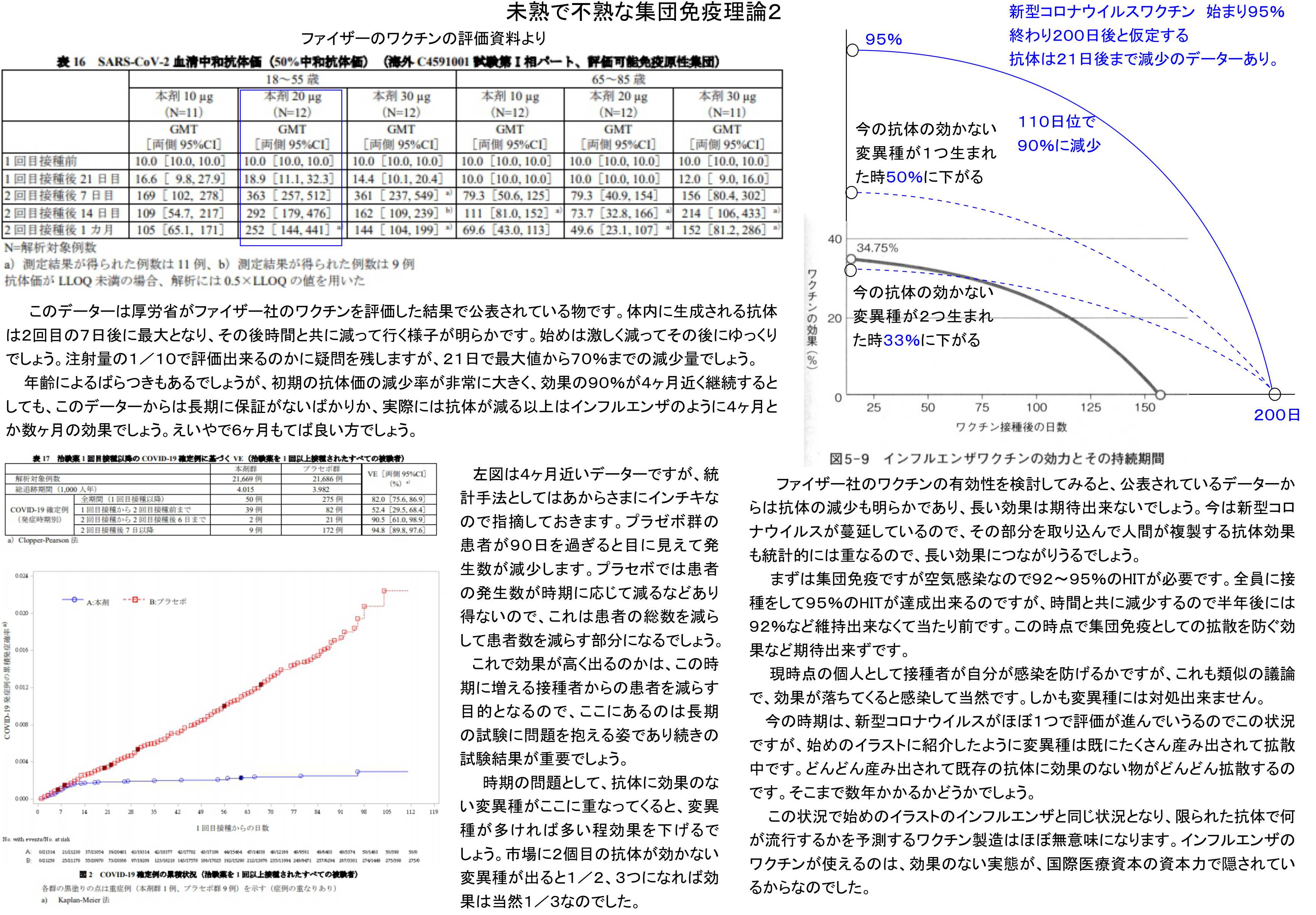 現実としては明確に空気感染なので、HIT90%以上必要となり、今のワクチンで効果が90%あっても接種直後のみなのです。2ヶ月もすればこの状況を下回り、大多数に4ヶ月かけて接種をするなら集団での抑止効果90%など達成不可能なのでした。