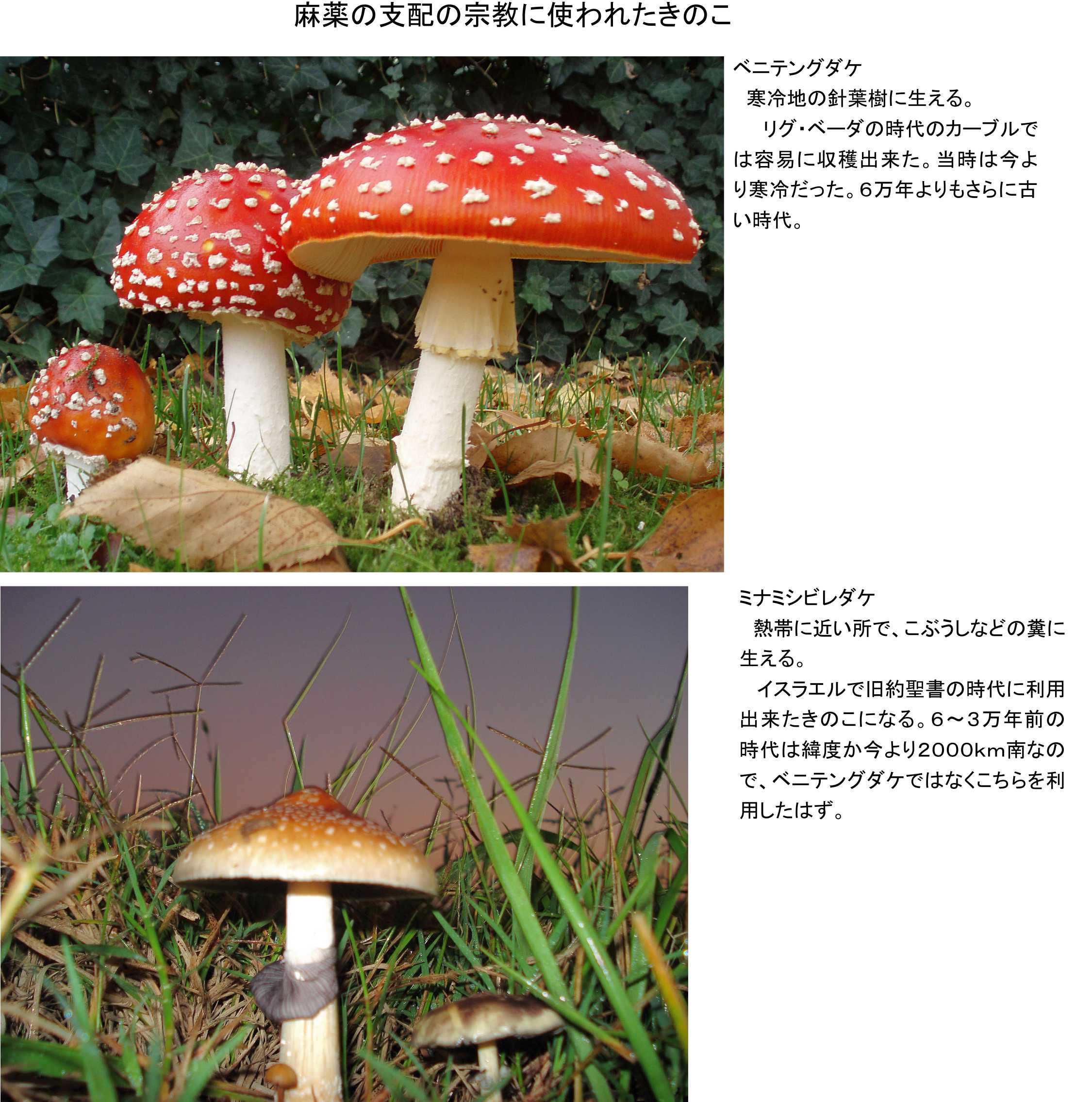 赤と豹ですが、これはアレグロ氏の本からでないと出せなかったでしょう。ベニテングダケとミナミシビレダケの色形です。きのこの傘が赤くて、白い斑点を伴うのです。これを双方の聖書で豹に例えているので、これを明確にしたいのでした。リグ・ベーダ、旧約聖書、そして新約聖書も、麻薬としてのきのこの性質を知る物が書いた、語呂合わせレベルの暗号を含むのでした。時の流れに応じて、きのこの麻薬の情報を残し宗教支配に使う為の教典なのでした。