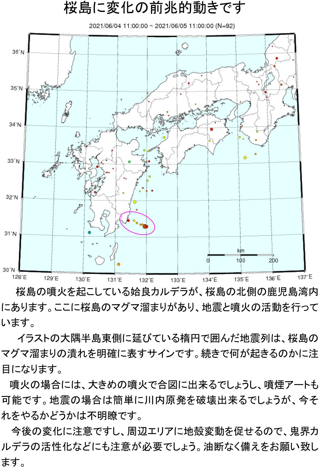 相変わらず期待だけさせてスカで普通ですが、九州の活性化をどの程度起こすかにも直結している部分です。2016年の熊本地震の本質的な遠因が、1年前の7月くらいに桜島が起こした地殻変動レベルの動きにあり、そこから薩摩半島西方沖が大きく調整されて熊本地震を招いています。