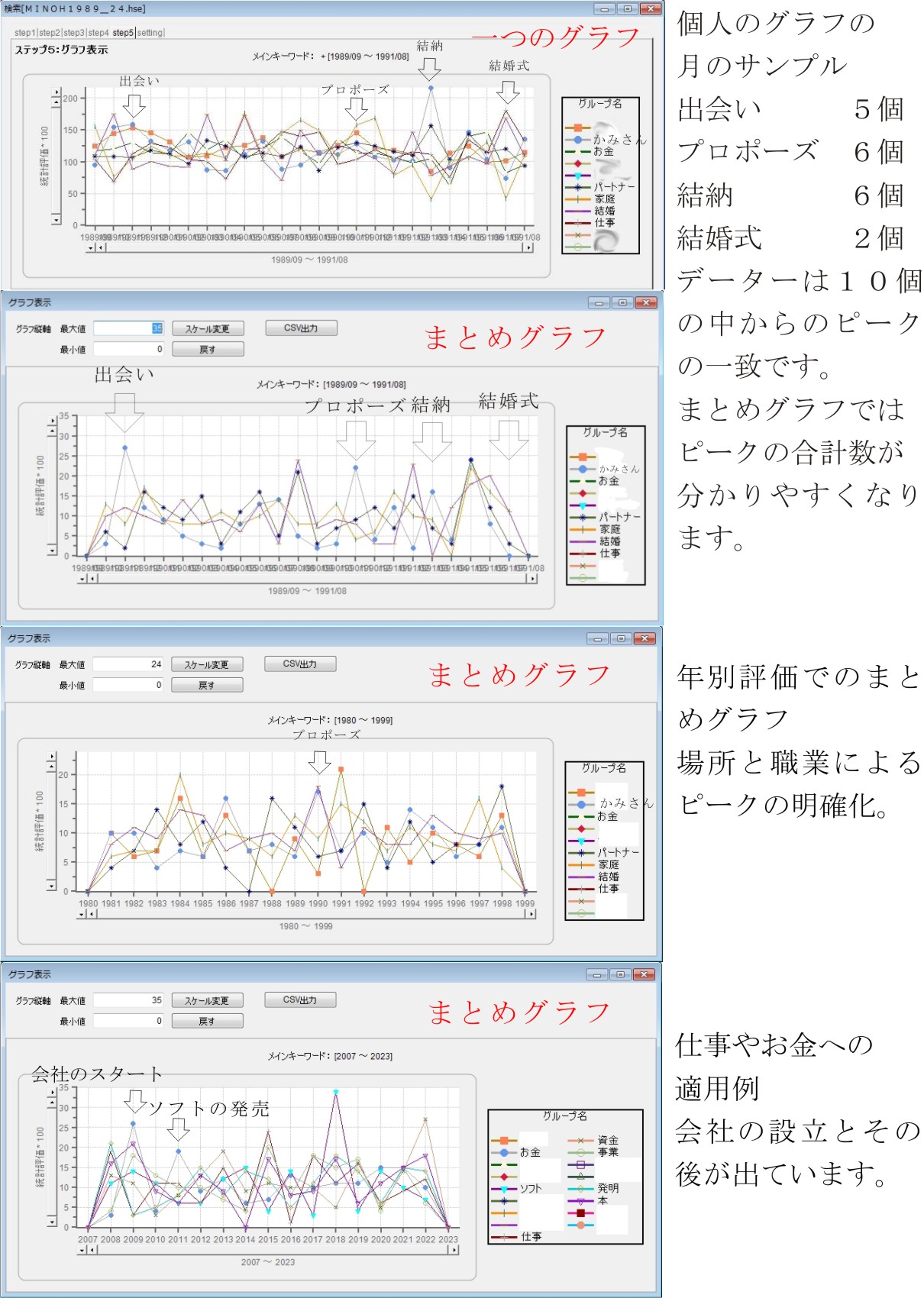 下に載せている物は、複数のグラフのピークをまとめて評価した物です。出会いから結婚までピークとの対応が取れるようになってきています。