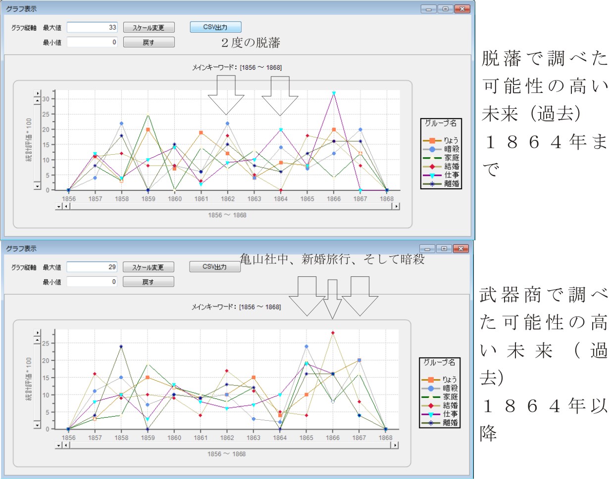 今回の一つ目のグラフは、「脱藩」という言葉に関連する部分を抜き出して、その中にある可能性の高い未来をグラフにした物です。