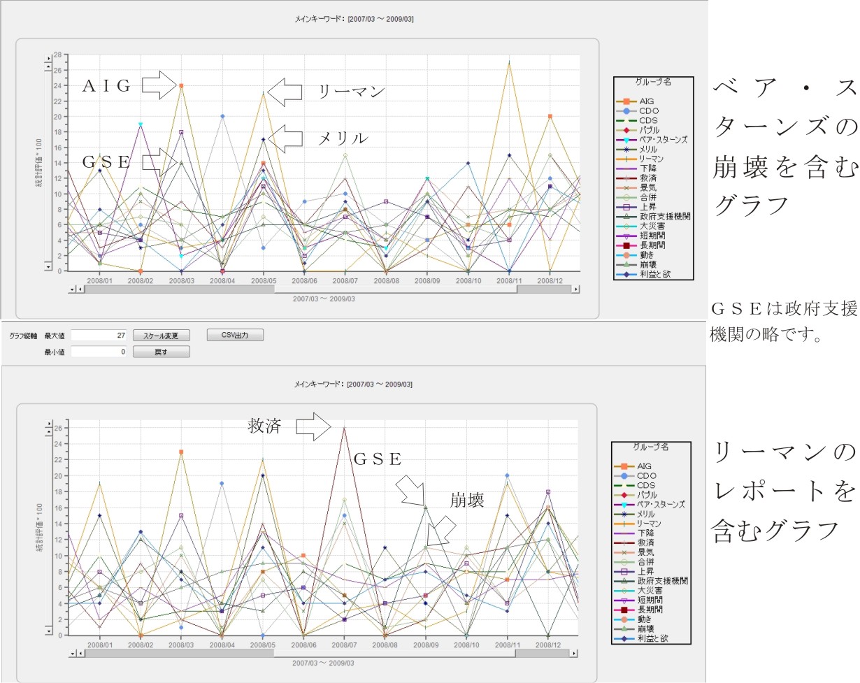 2つめのグラフはベア崩壊に変えてリーマンのレポートという言葉の含まれている物を選び出した物です。