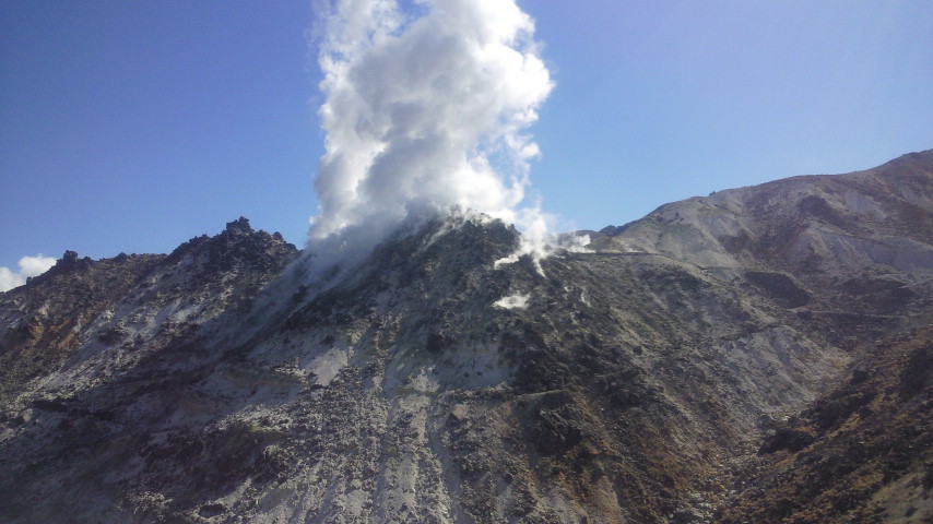久住山で噴気を上げる硫黄岳の写真です。押戸岩は撮り忘れていました。阿蘇にも登れなかったので、やはり改めて質問に行くことになるようです。
