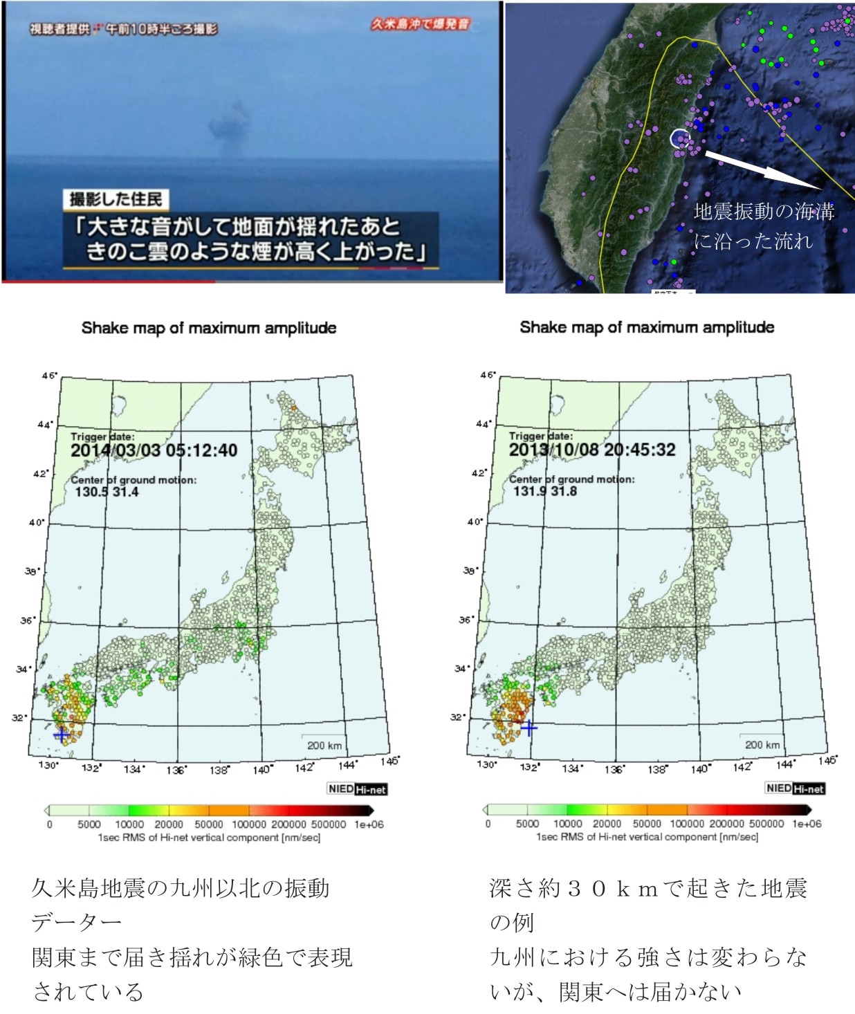 沖縄本島や久米島はユーラシアプレートに載っており、下にはフィリピン海プレートが入り込んでいる形をしています。この形をうまく利用したエネルギー伝達でした。