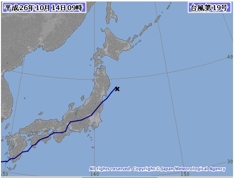 台風19号はとても不思議な進路を取りました。非常に強い勢力で沖縄を通過し久米島を始めとするこのエリアの不安な場所への調整をした後に、九州の西から霧島の近くを抜けて四国に向かいました。