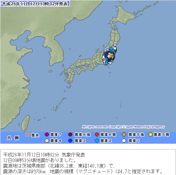 こちらの予想は関東南部の震源での関東の揺れでした。科学としては8日の地震の影響が震源の南側である関東北部に及ぶことをもう少し考える必要があったようです。比嘉さんは茨城から栃木の地震の心配をしていましたので、まずはこの分だと思います。