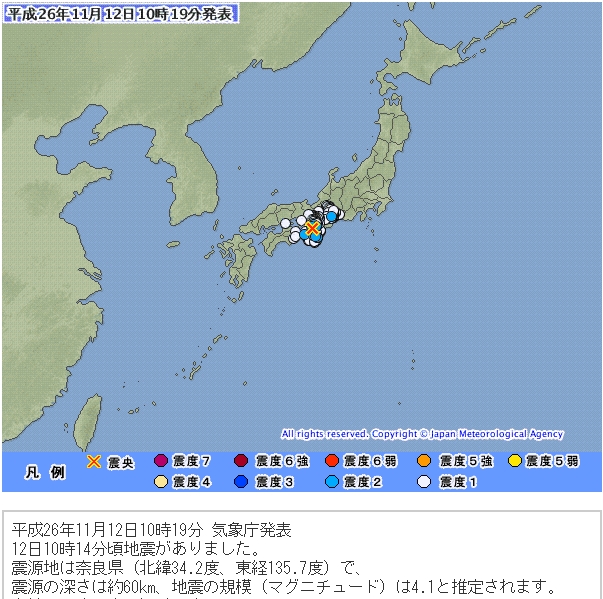 まず直後の奈良のM4.1です。こちらは心配していた南海、東南海への地震の連鎖を一時的に止める働きがあると思います。これで当面動かない物と思いますが、小さな揺れでエネルギーを抜くことになるかも知れません。