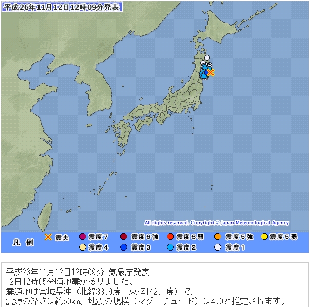 お昼には宮城沖でM4.0が起き、こちらもこの領域のエネルギーの解放を先送りすることになると思います。