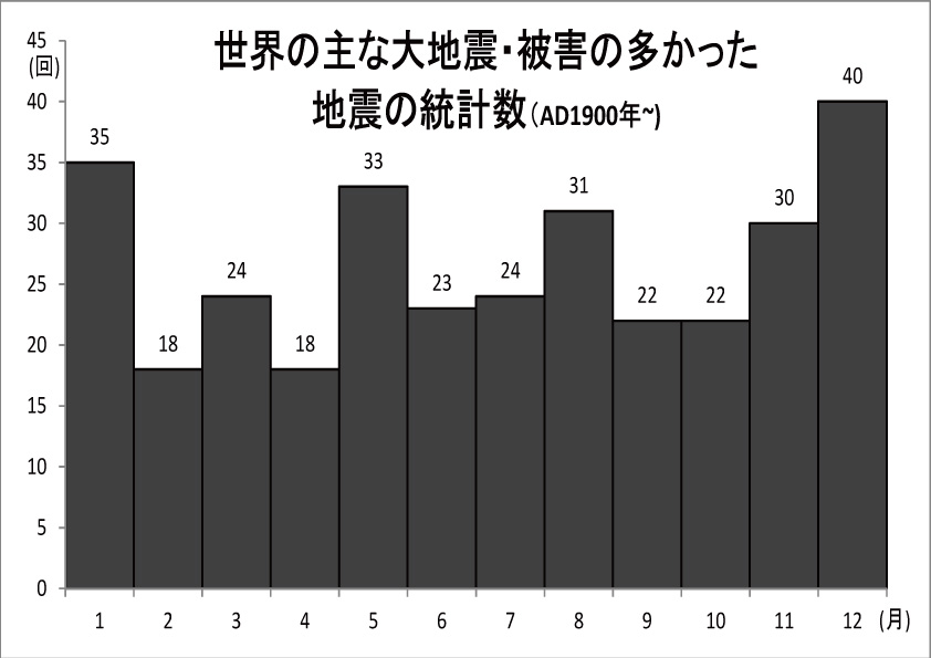 歳差運動の原因である伴星の存在は多くの人には信じがたい物であり、現実の証拠は地震の発生原因になるくらいです。当時の本のデーターを載せておきますが、今回はこのデーターを12月21日を1ヶ月の中心にして作り直したものを使います。添付のデーターから推定出来ると思いますが、そうすると12月のデーターが他の全ての月を越えることになるでしょう。今のデーターとの比較で中心位置とその大きさが分かりやすくなるのです。