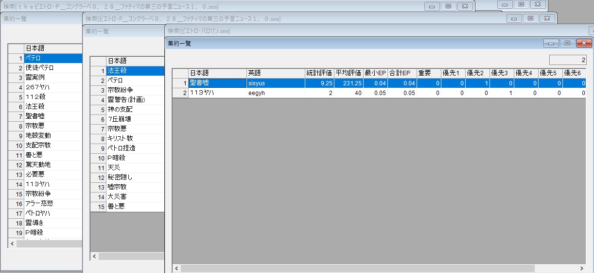1番目にペトロ、2番目に使徒ペトロ、4番目に267ヤハ(ウエ)、5番目に112殺、6番目に法王殺