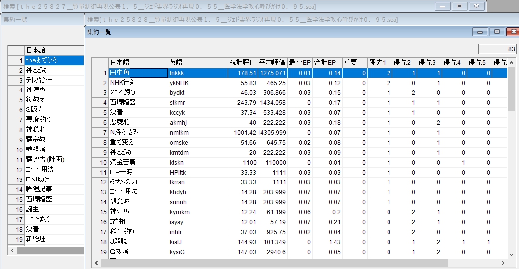 83、円、休日、起きる、感じる、未熟児、不熟ないちじく、期限切れ、消える、シラミの駆除