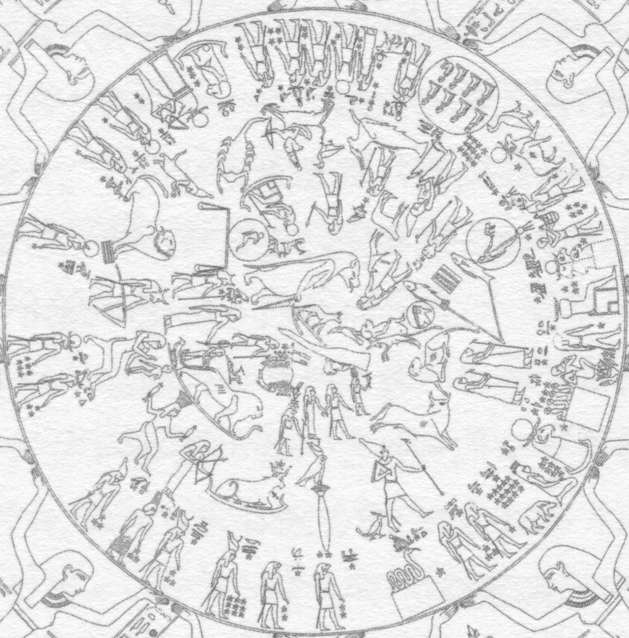 添付のイラストはエジプトのデンデラの遺跡に残されている有名な天文図です。当時の黄道12宮のイラストと位置が書き残された物になります。