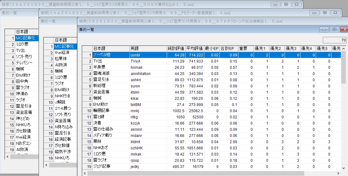 最後の解析ですが、この記事の始まりの10月21日の追記を書けた時点での解析結果でした。これでここからノーベル賞の嘘を探せるなら非常にありがたいので、何時間も投入して頑張ったのでした。ニュースになるのがまた1日延びて苦しいのですが、2025年の免疫寛容のノーベル生理学賞にも、妊娠の免疫寛容においては間違いがあったと明確に指摘出来たでしょう。証明するにはSTAPの進展が必要になるのですが、理論医学においてはこの結論で先に進むのであり、魂の能力を無視している現代医学の引き起こす間違いだと指摘しておきます。