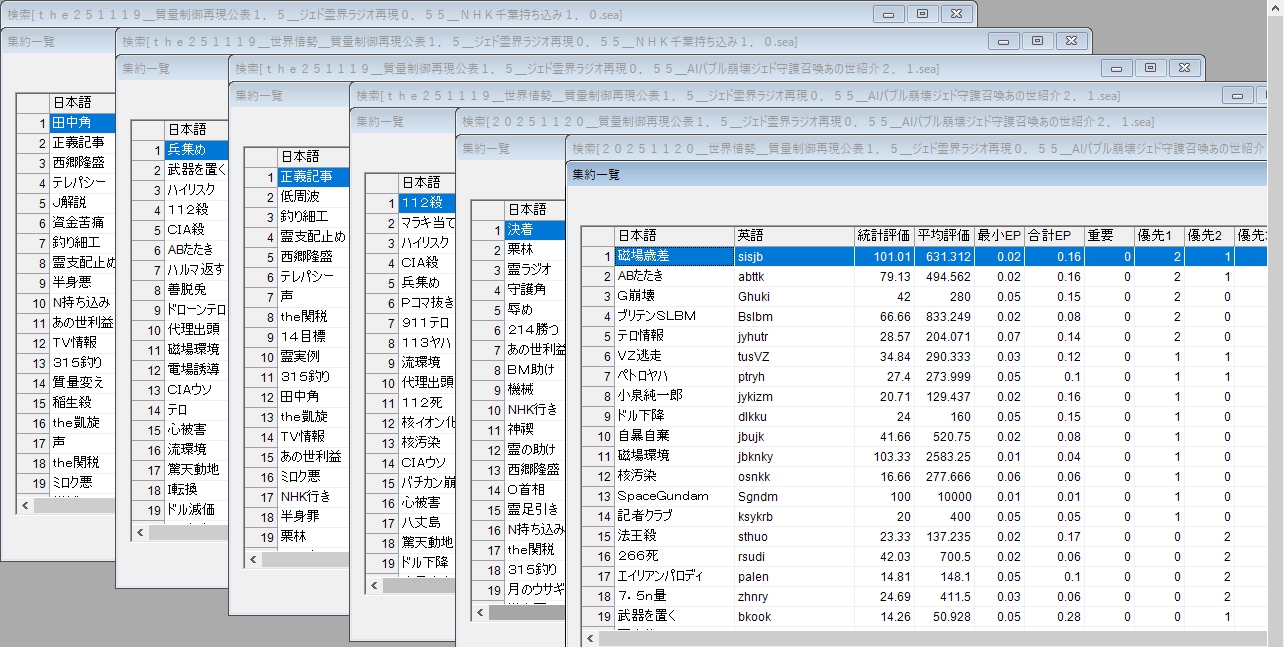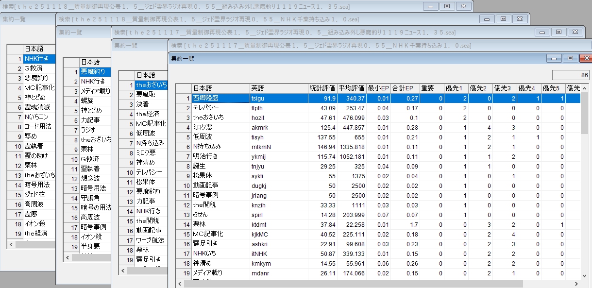 これだと19日は組み込みを外す事が重要だった様子に見えるので、それ以外の重要な数値で検討する。主に知りたいのは、11月23日以降に見える気がする秋田の聖母マリア様の登場時期です。
