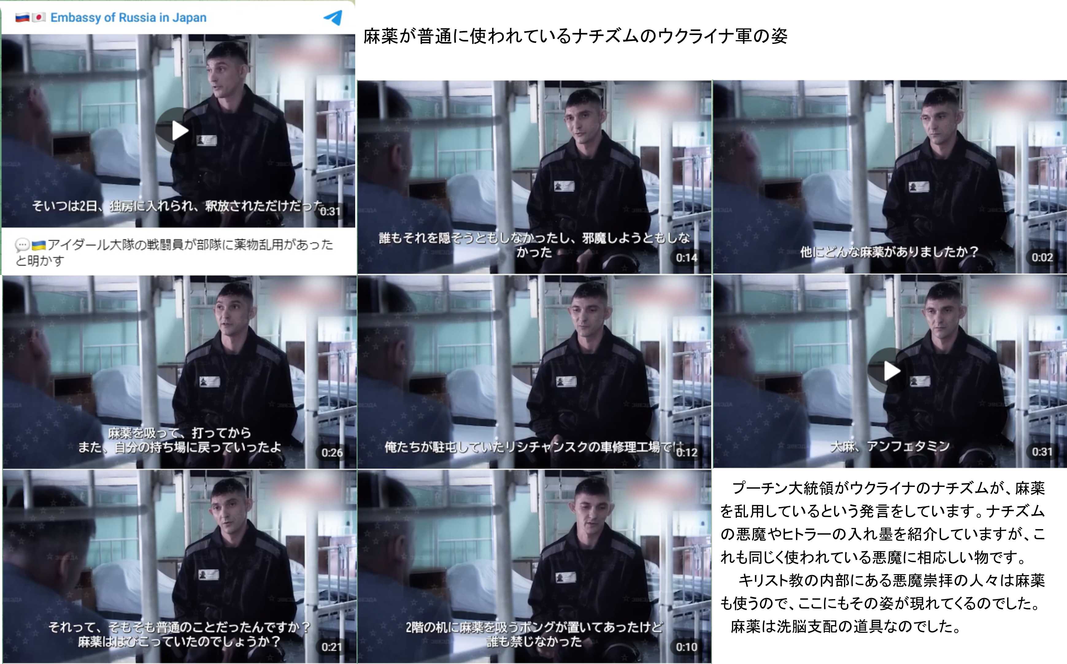 麻薬とナチズムこそが、西側がサポートしているウクライナ軍の真実の姿であり、メディアがこれを報道しないので、ロシア軍を悪に仕立て上げられるのでした。ウクライナの麻薬は有名ですが、ロシア軍が麻薬漬けだと批判する西側のニュースは目にしていないのでした。でっち上げるにも無理があるのでしょう。
