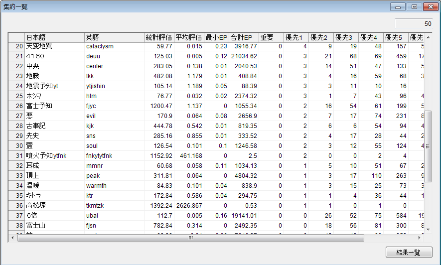 ここでの解析には高機能版を使っていますので、メインキーワードを調べた後、富士山の噴火に関連する部分をフィルター処理して抜き出しています。メインキーワードの場所が決まった後で、富士山の噴火に関連する部分を抜き出したと考えて下さい。約6割くらいのメインキーワードに富士山の噴火は含まれていました。