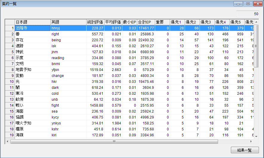 以下のイラストの一覧表示は高機能版の物になります。言葉の並びで上から順番に強調されてたくさん出ていたと考えて下さい。