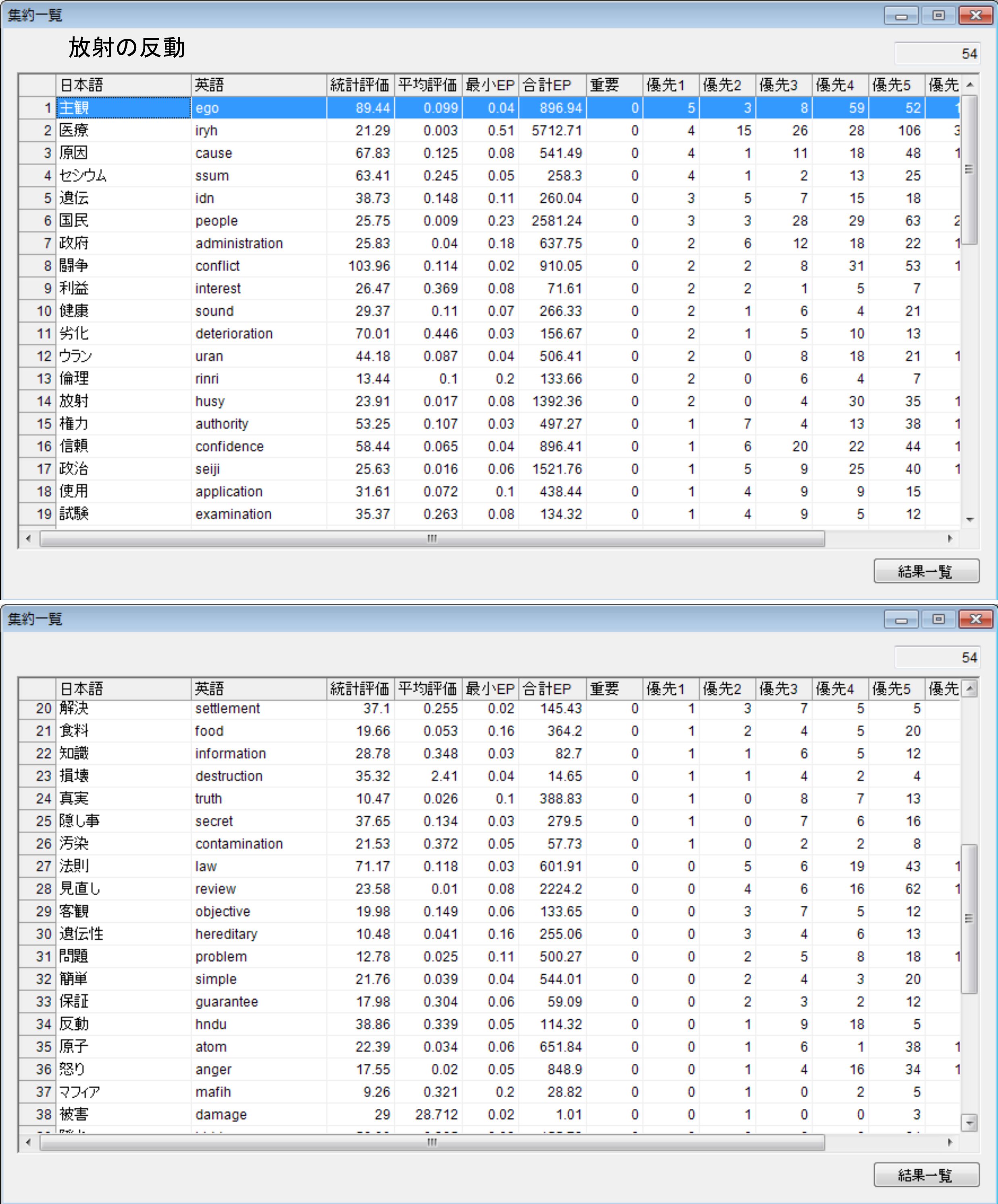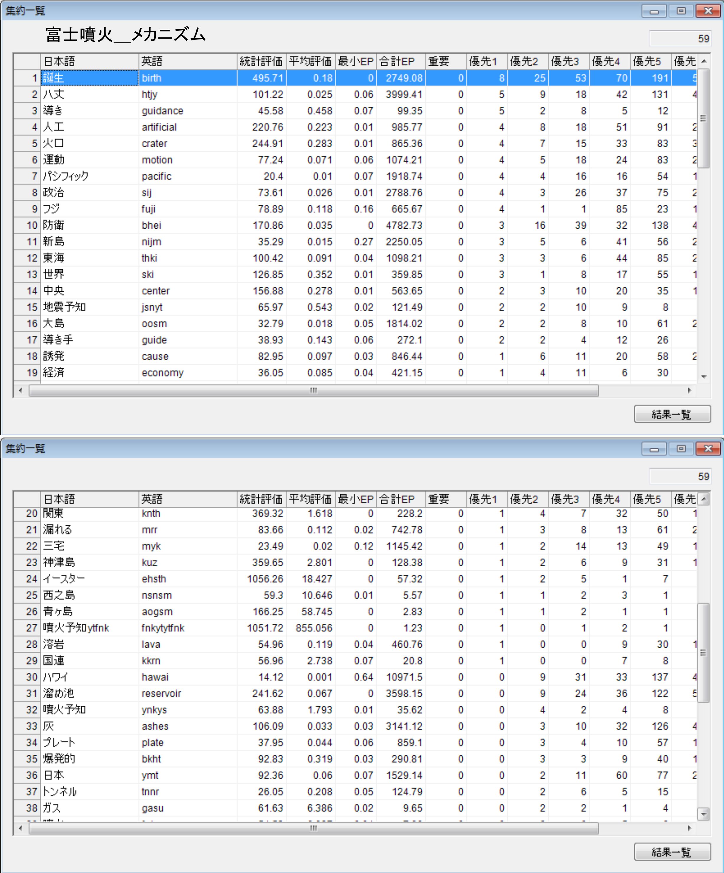 この解析では先日の橿原と神武のリストを使って、同じ種類の言葉がこちらではどの様に出ているかを確認してみました。イラストには先頭部分のみを載せています。先頭に善が来ていることには驚きがありました。