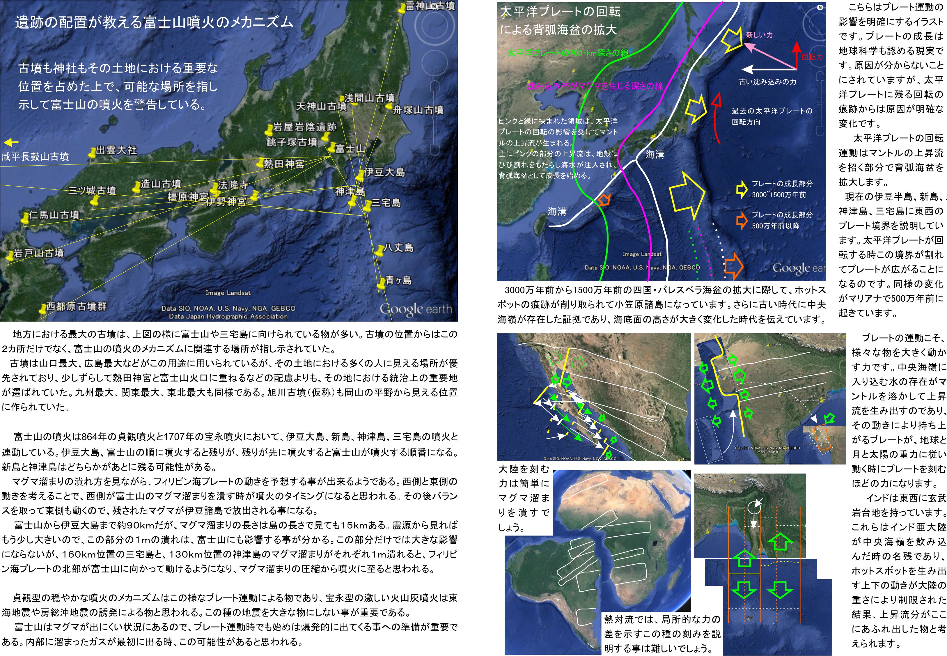古いイラストですが、プレート運動と遺跡の関連を説明する物がありましたので再掲しておきます。引き続き富士山の安泰を願って頂ければと思います。