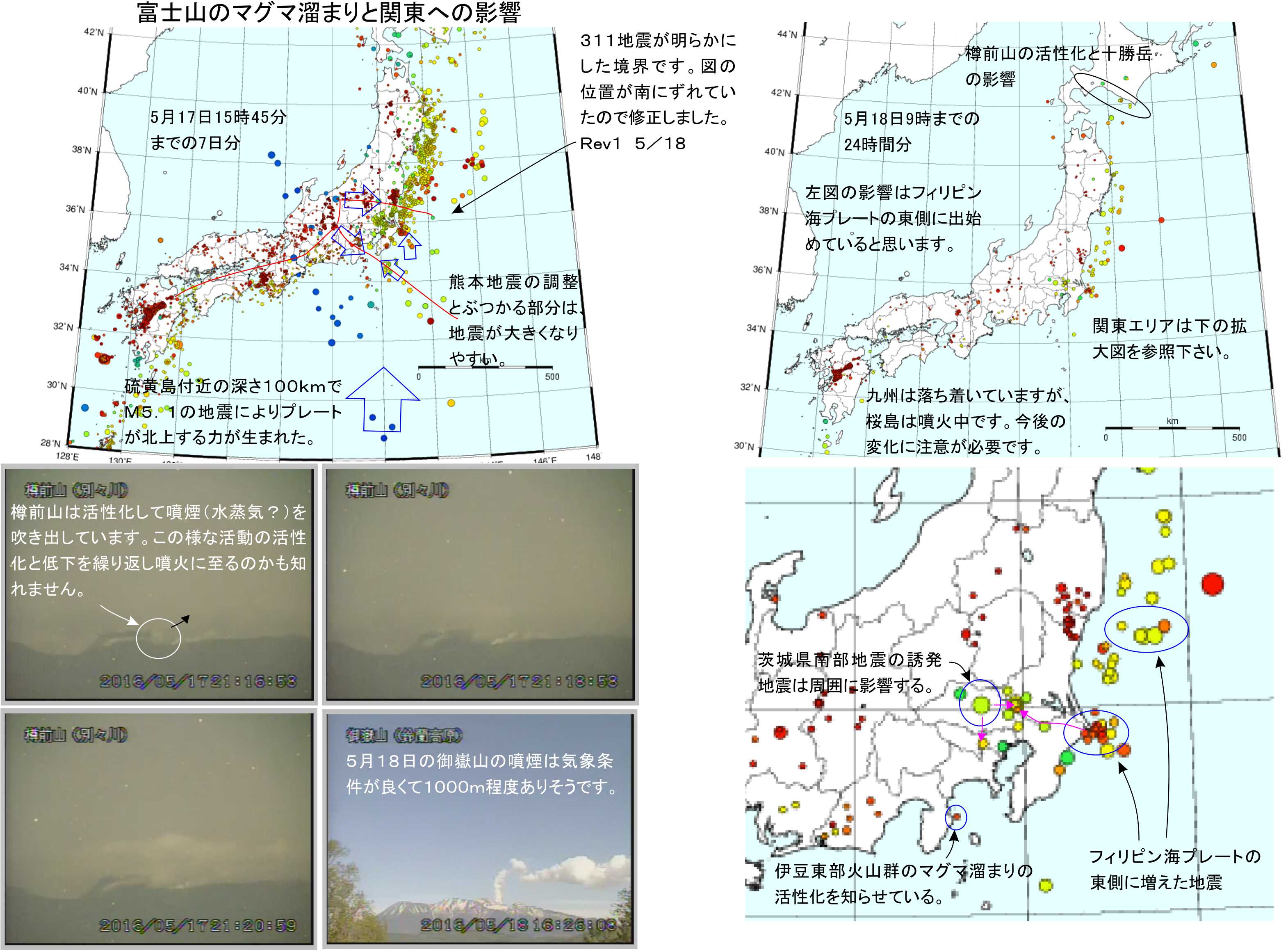 御嶽山にどの様な影響が及ぶかを考えていました。マグマ溜まりは2014年の5月の相模湾の地震と焼岳の群発地震から9月の噴火に至り、その後の長野県北部の地震までつながりを持っていました。