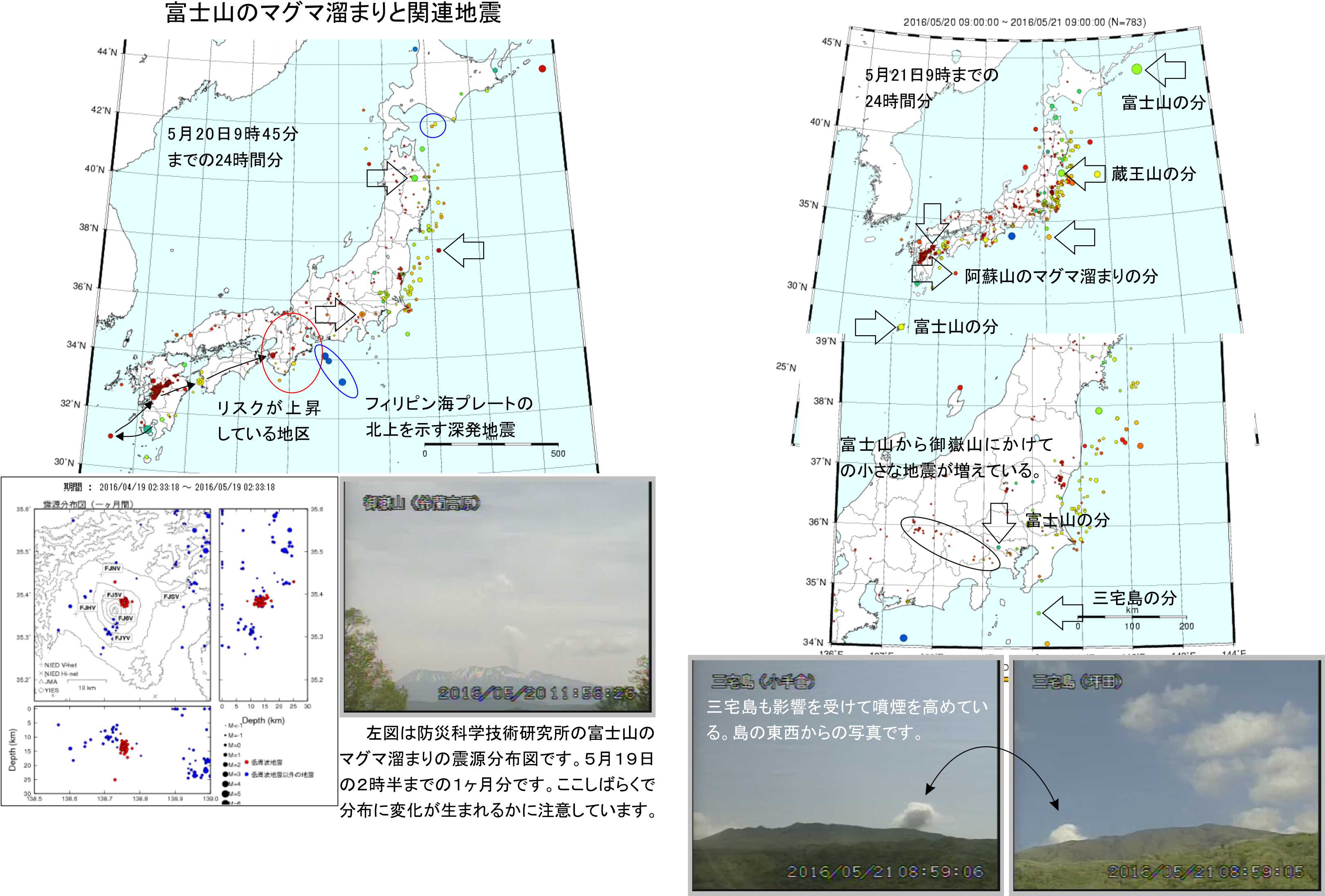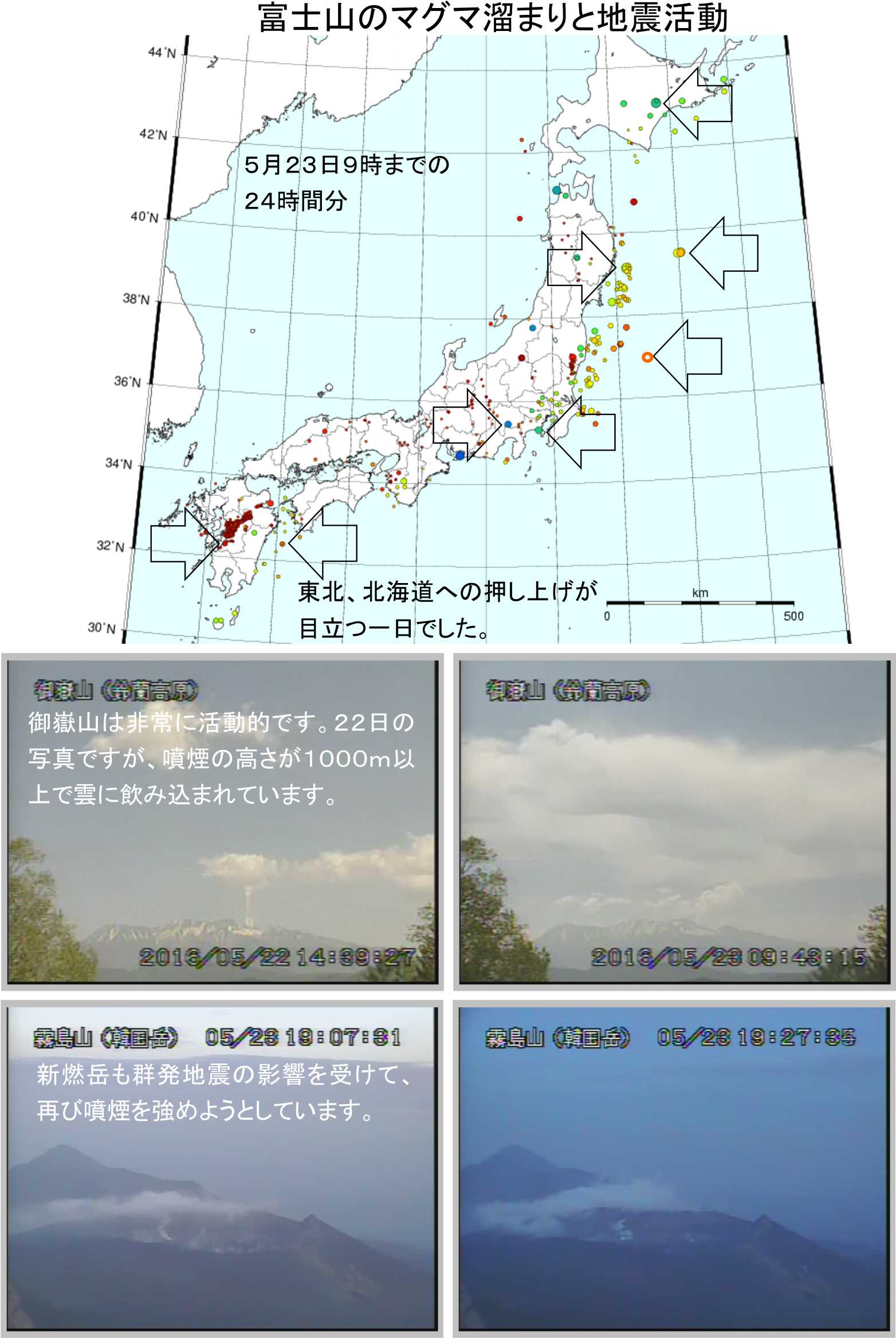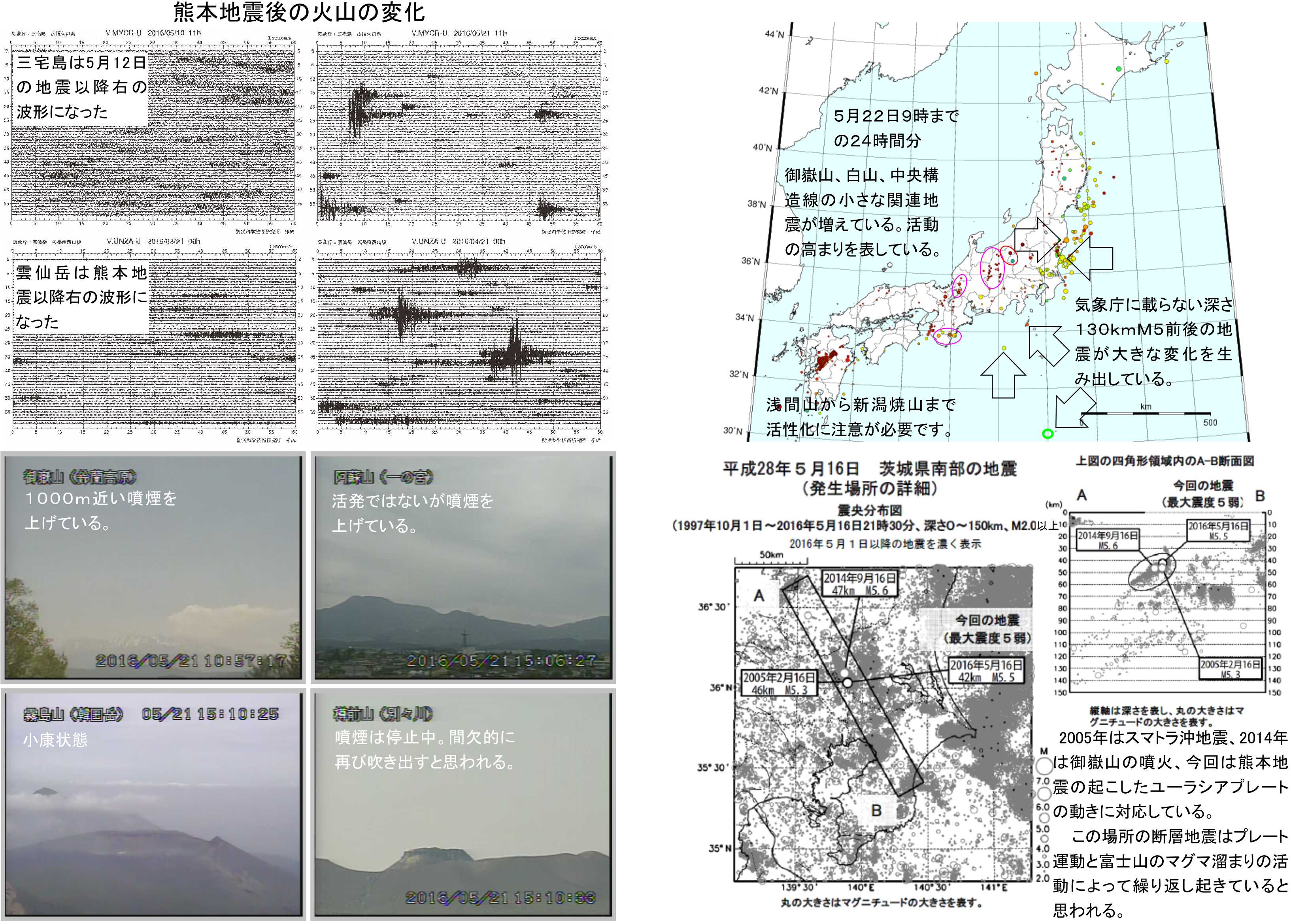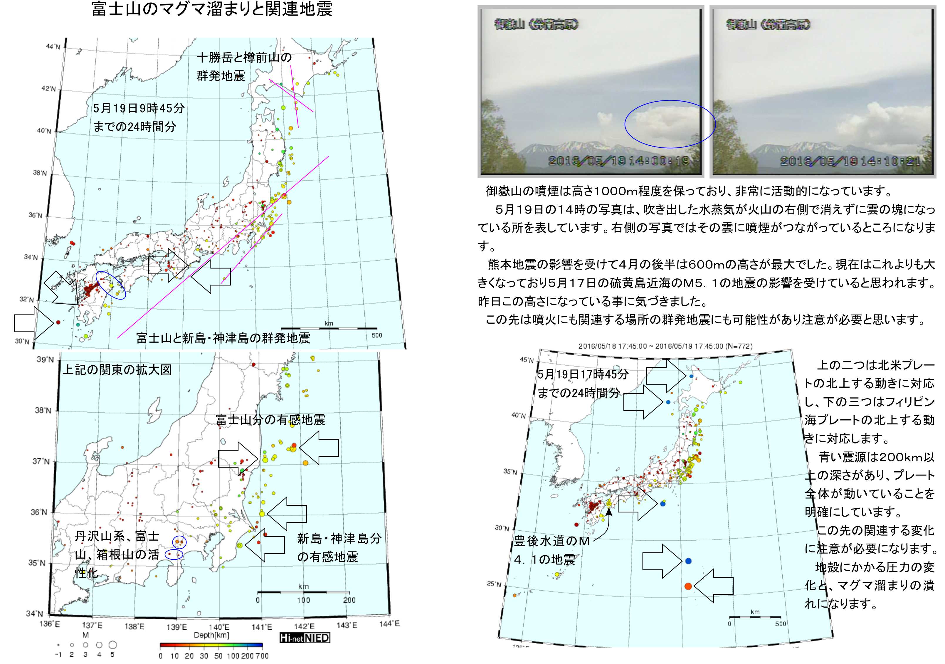5月17日の硫黄島近海におけるM5.1の地震と熊本地震の影響で関東の火山は多くが活性化しています。フィリピン海プレートの押しが強まって来ています。