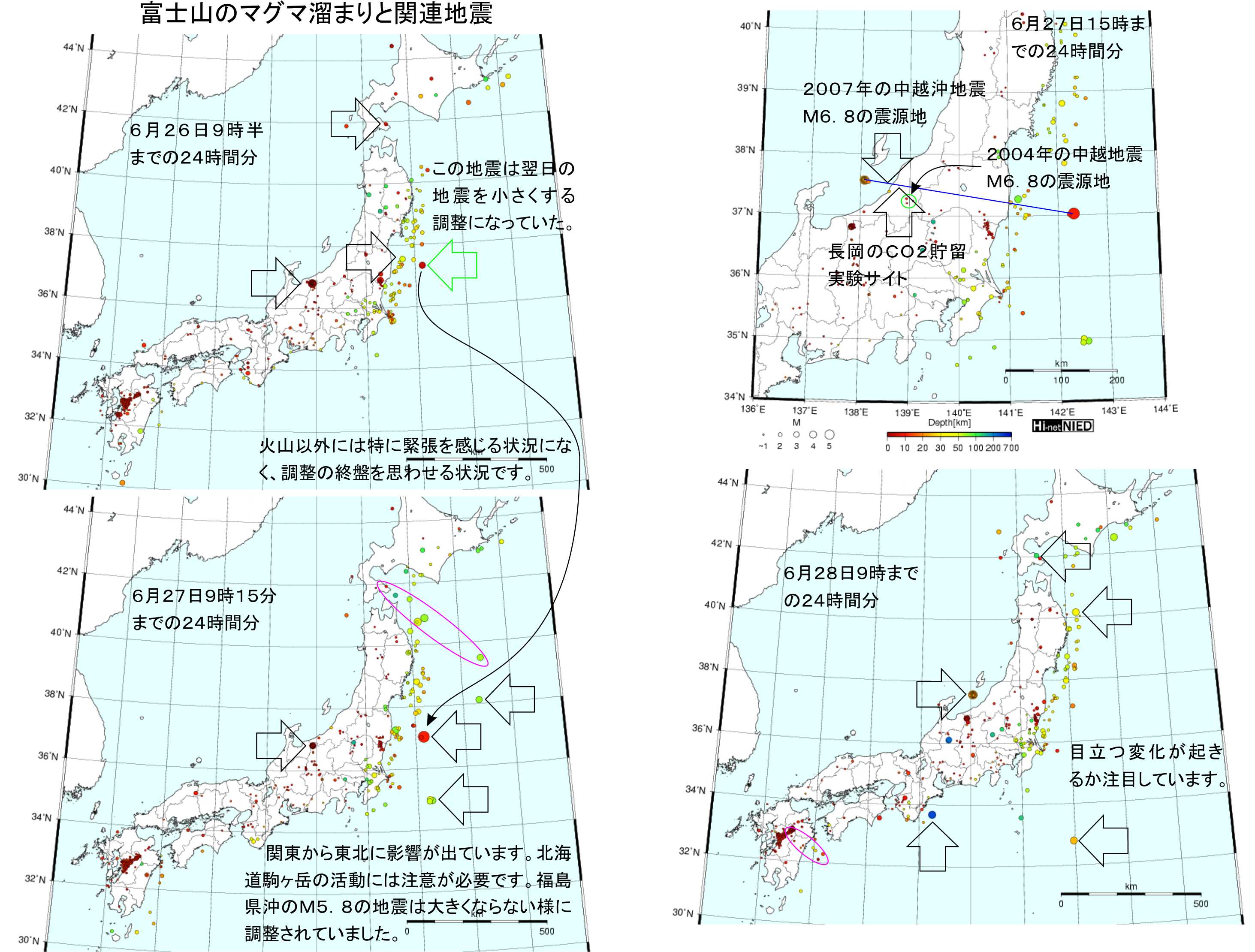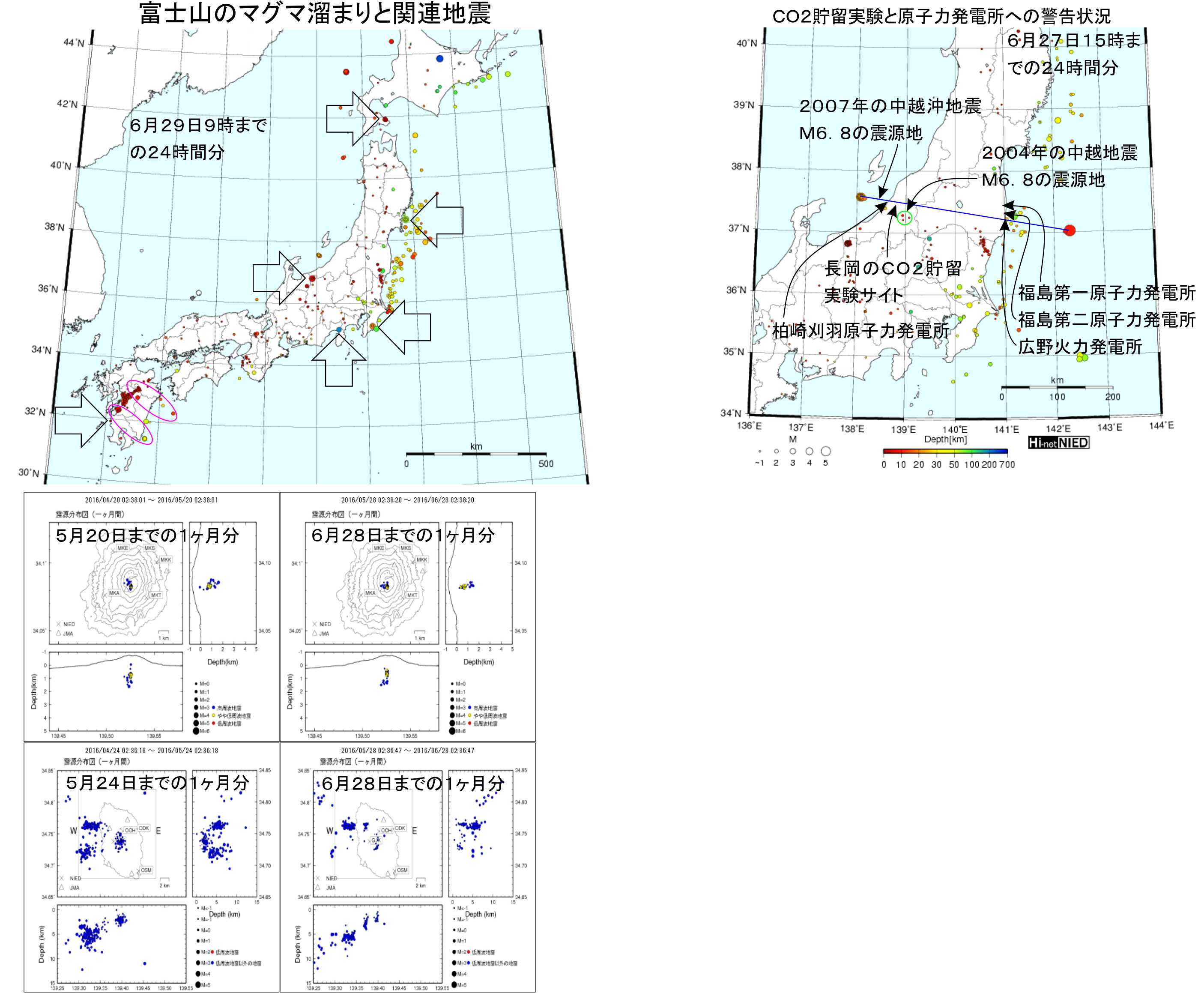 27日 福島沖M5.8と新潟沖M4.4地震で上記地震のプレート運動の影響を受け流し、同時に長岡のCO2貯留実験を批判し回収を求める。原子力発電所のリスクも同様に警告している。(4月16日以降の熊本地震の発生に相当し、当時はこの地震を利用して台湾地震への準備を始めています。)