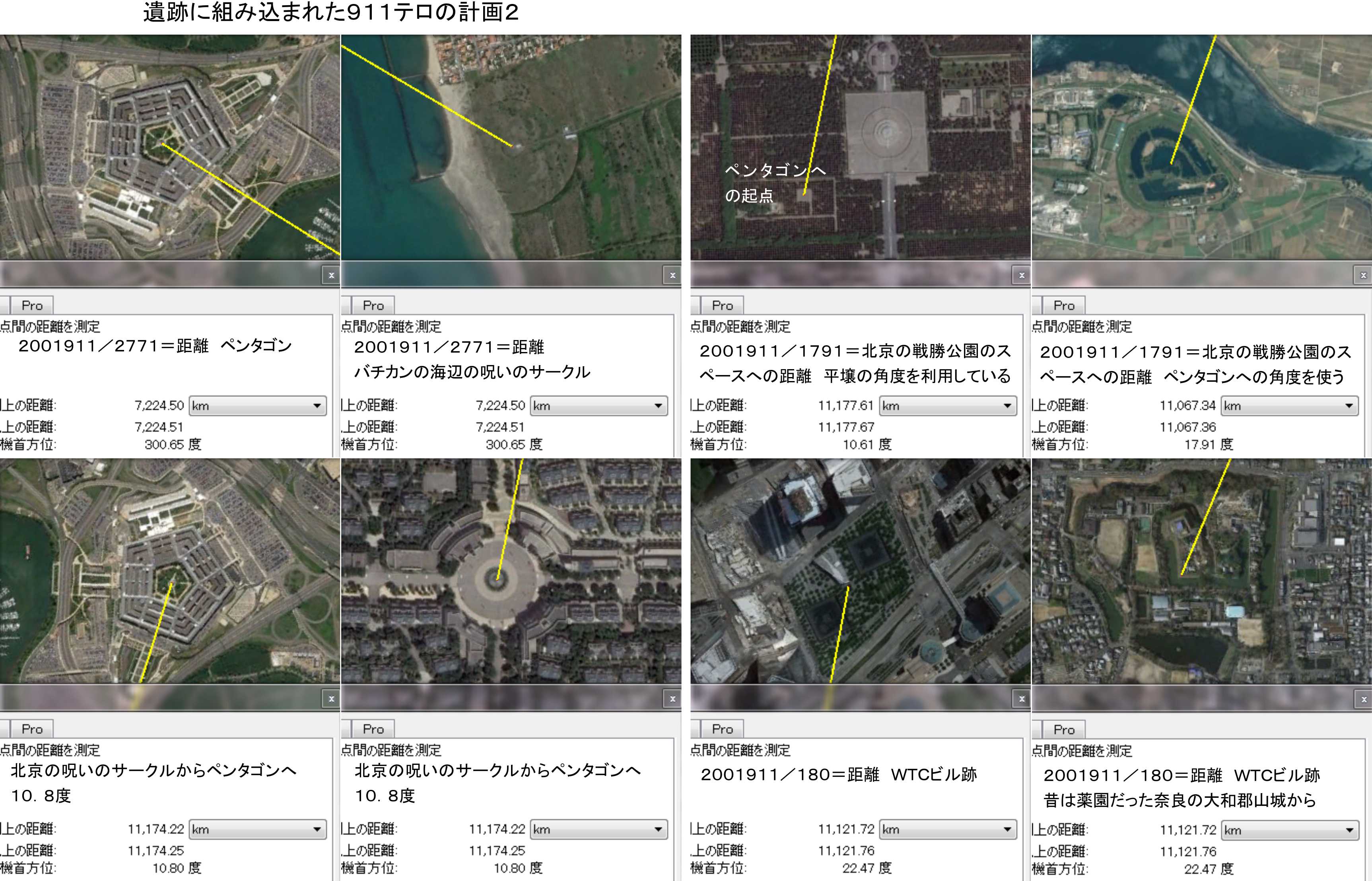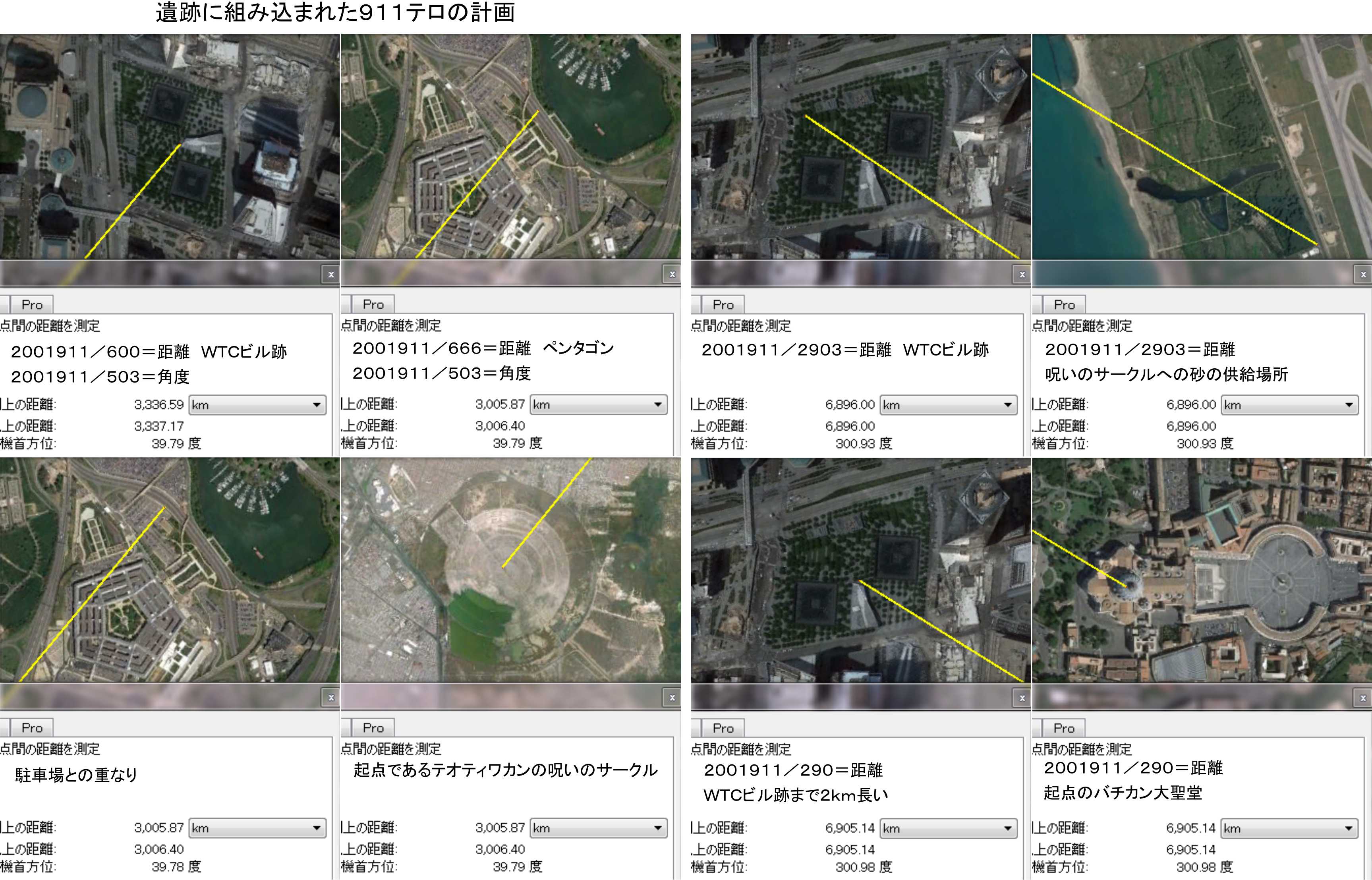 主要な遺跡の作成は5000年よりも前と思われ、その時代からWTCビルの位置やペンタゴンの位置が特定出来ていることも不思議ですが、2001年9月11日に米国政府の一部がテロを自国に向けて引き起こすことを予定出来るだけでなく、その通りに実行させられることも私たちの常識に反する現実です。