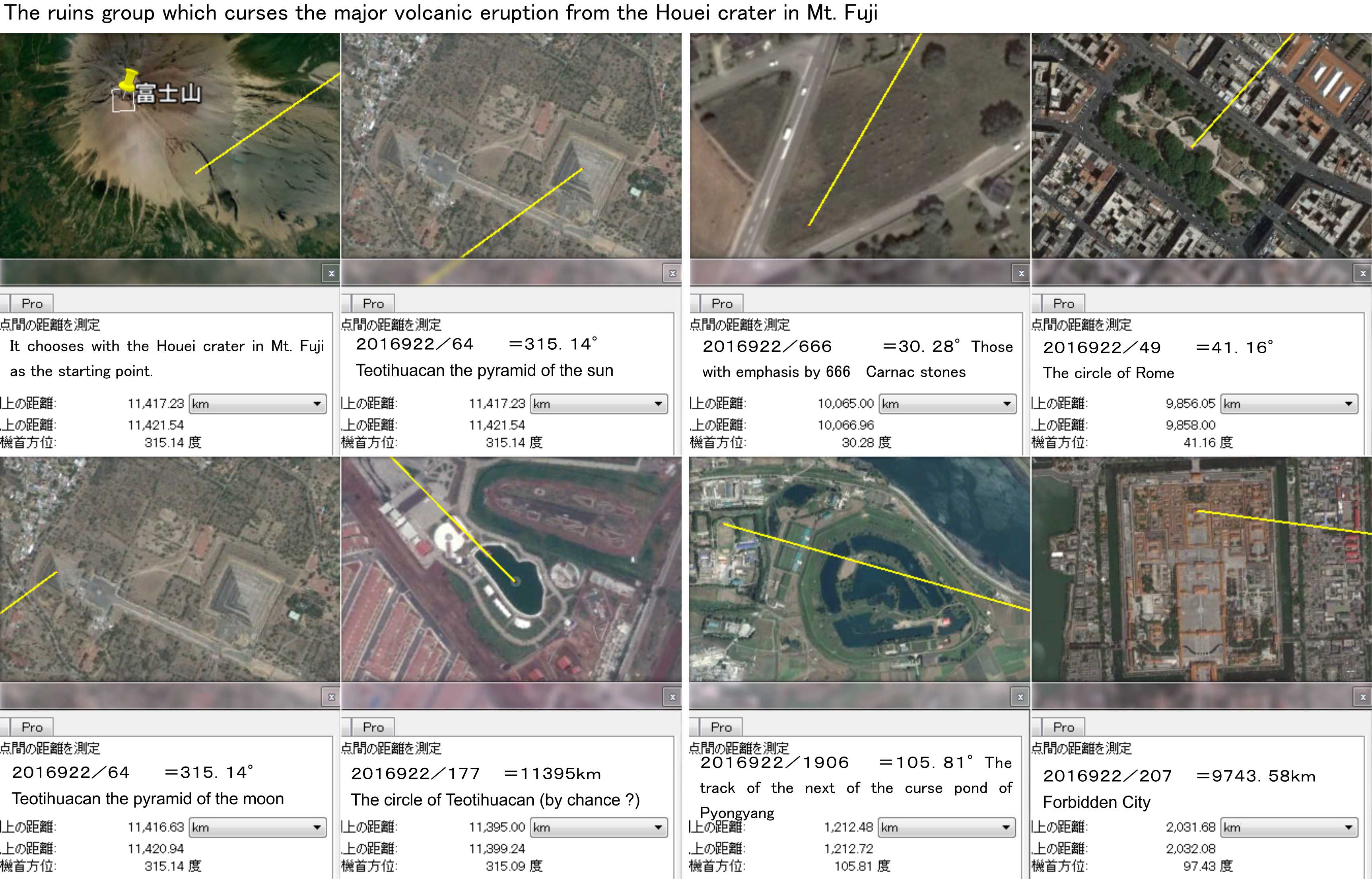 Inclusion of the distance of the Vatican, and a Traiano lake and Teotihuacan is covered to 20161231. An angle does not have accuracy from the first and is the same.