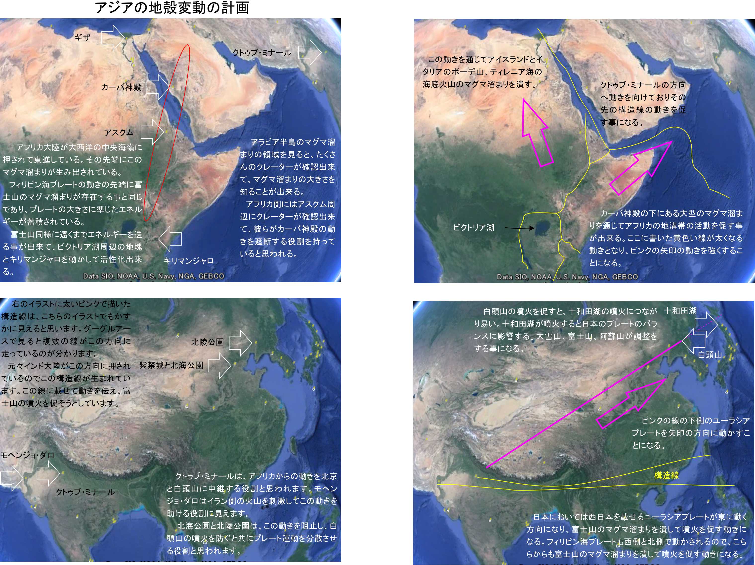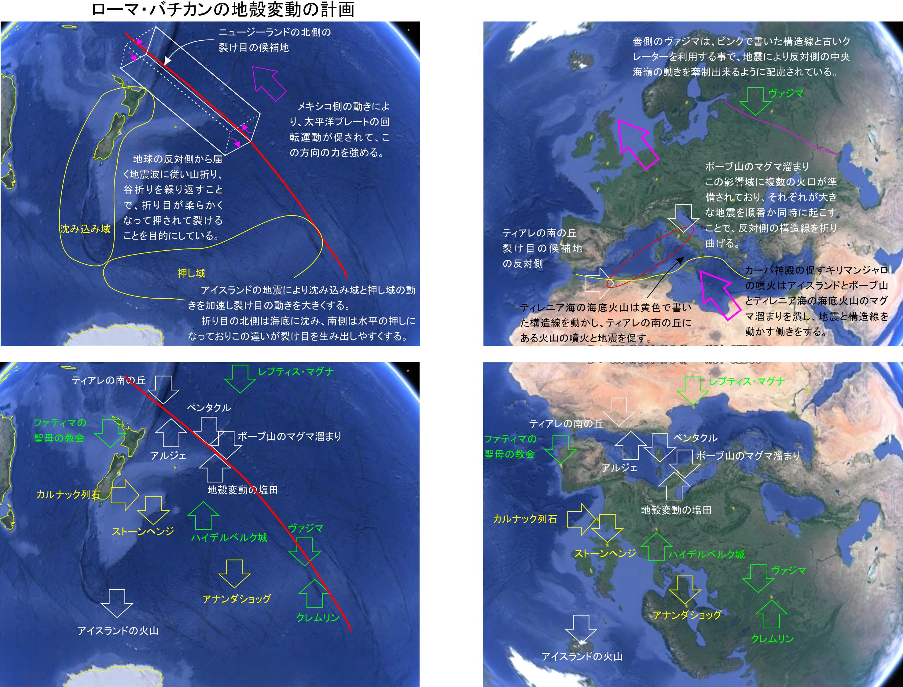 戦略は何重にも考える物なので当然の事なのだと思いますが、始めから計画の全てを記事に書くのは無理だと思っています。多くの人が関連する遺跡との関係を調べる中で地殻変動の計画の全貌が明らかになると思っています。
