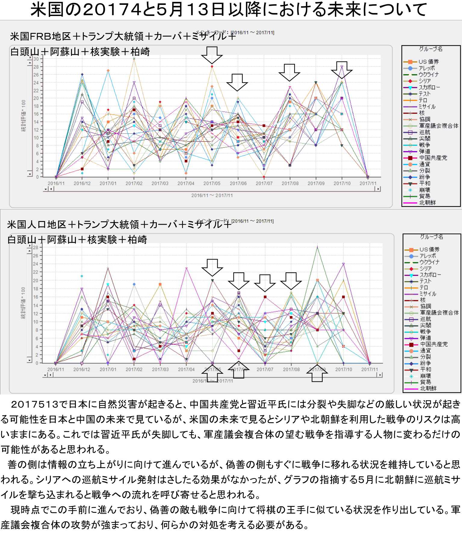 これまでに公表したグラフ解析では2017513を経て日本と中国では中国共産党と習近平氏の分裂と失脚などの未来が強まっていますが、これとは異なる米国のグラフ解析を2つほど紹介します。
