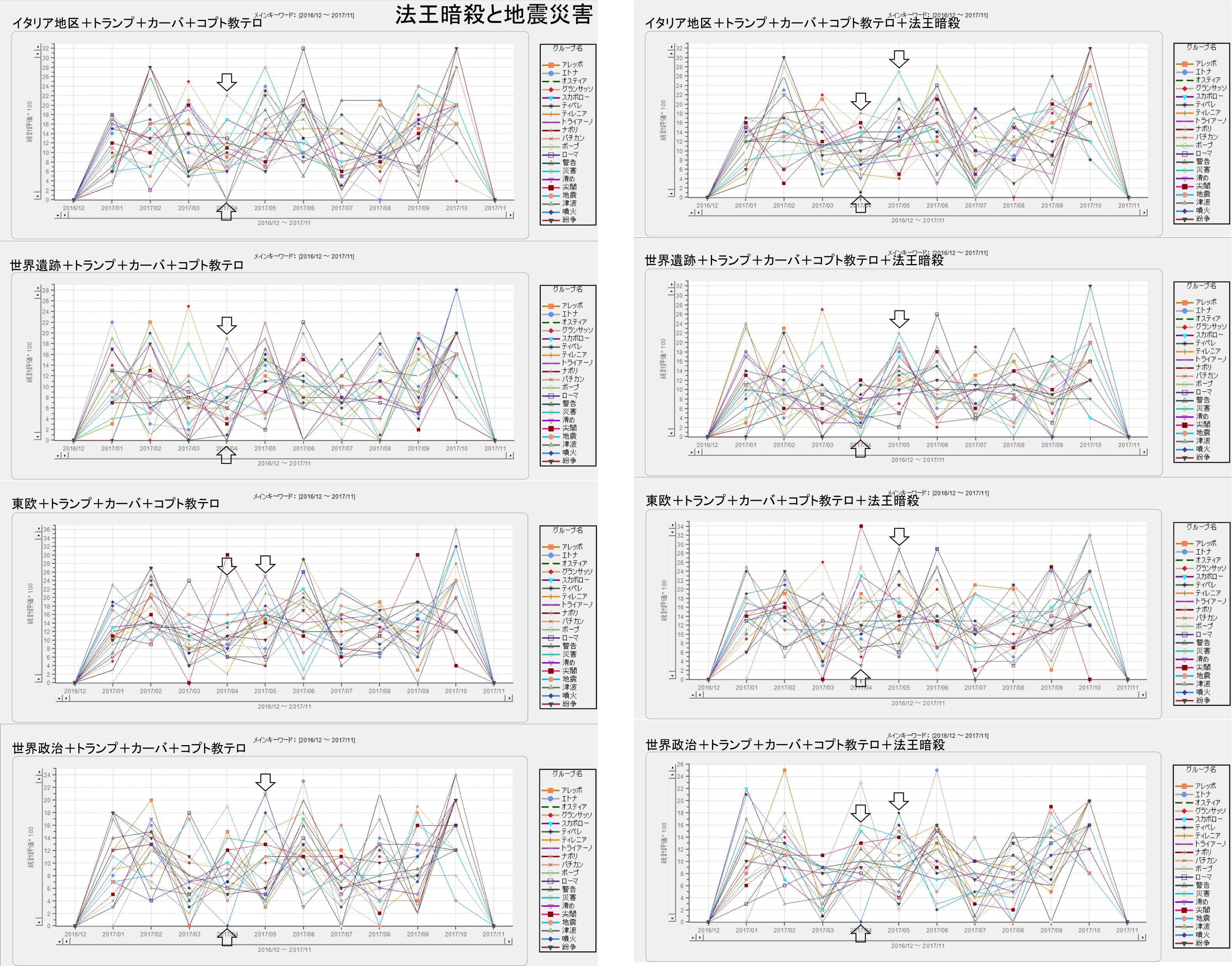 イタリア地区のもう一つのグラフは、暗殺が起きてしまった場合のケースです。この場合にアジアでは2017425と431の前後で善の側が遺跡と自然の情報公開に立ち上がっている可能性があります。4月にティベレ川の津波の清めが起きるのみならず、5月にも災害が出されています。トライアーノ湖に向けて遺跡の情報がファティマの聖母の100周年である5月13日に合わせて、たくさん組み込まれています。これらの組み込みはこの状況を示す物でもあるのでしょう。