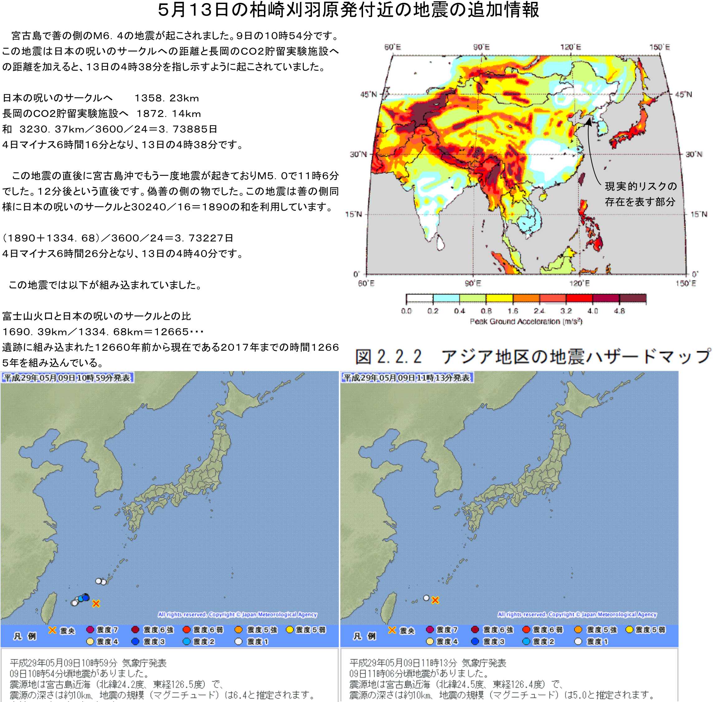 5月13日の4時半過ぎに地震が起こされる可能性が高まっており、この時点で柏崎刈羽原発に損傷が起きるかは分かりませんが、この時刻に予告の地震か本震かが起こされると思います。