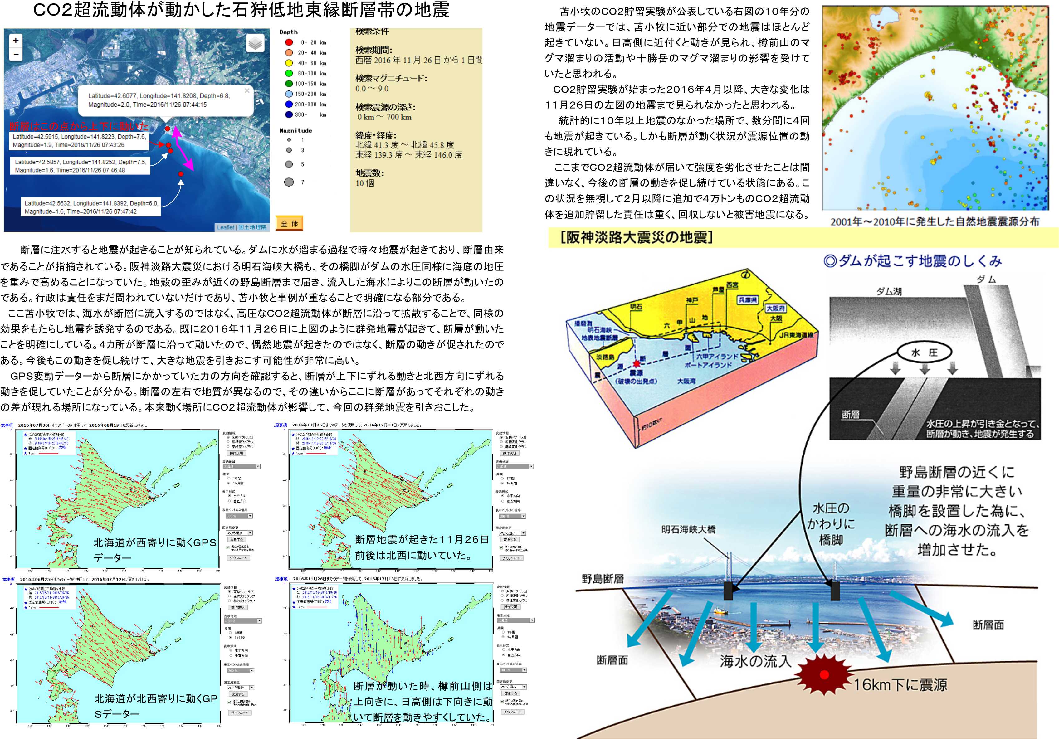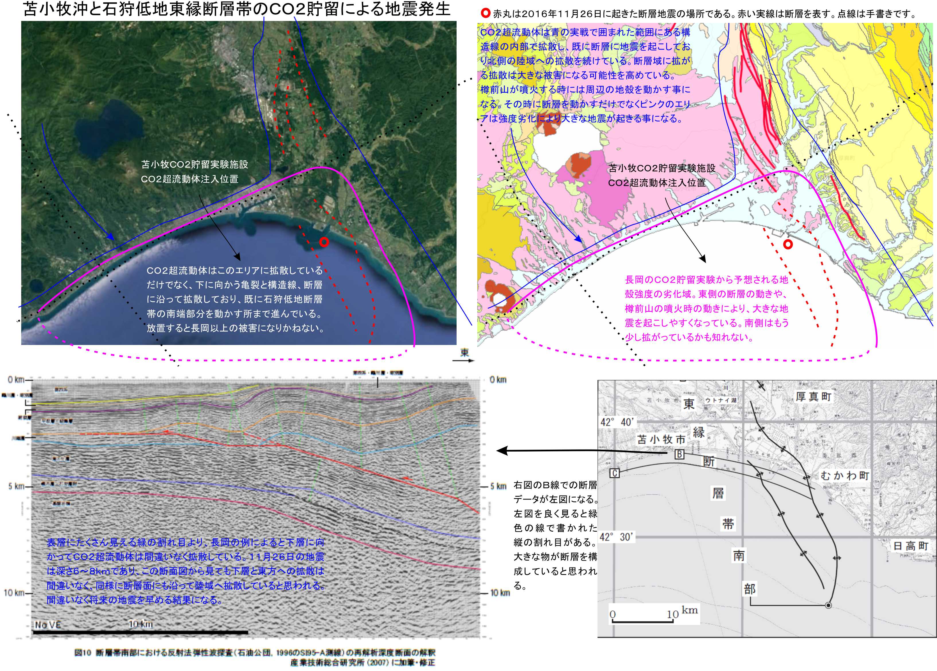 事業者側は、長岡の例を参考にして責任逃れが出来ると考えているはずです。状況は長岡とは異なるのであり、目先のリスクを知るべきでしょう。長岡さえも柏崎刈羽原発付近の地震を起こす事になり、長岡も影響を受ければこれ以上の言い逃れは出来なくなるでしょう。そこまで事態が悪化する前にCO2超流動体を地下から抜き出して地殻を安定させるべきでしょう。被害を受けるのは苫小牧の人々であり千歳などにも断層地震の被害が及ぶ可能性があるでしょう。