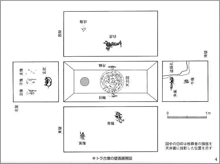 キトラ古墳の壁画展開図(来村多加史『高松塚とキトラ』(2008・講談社)より)