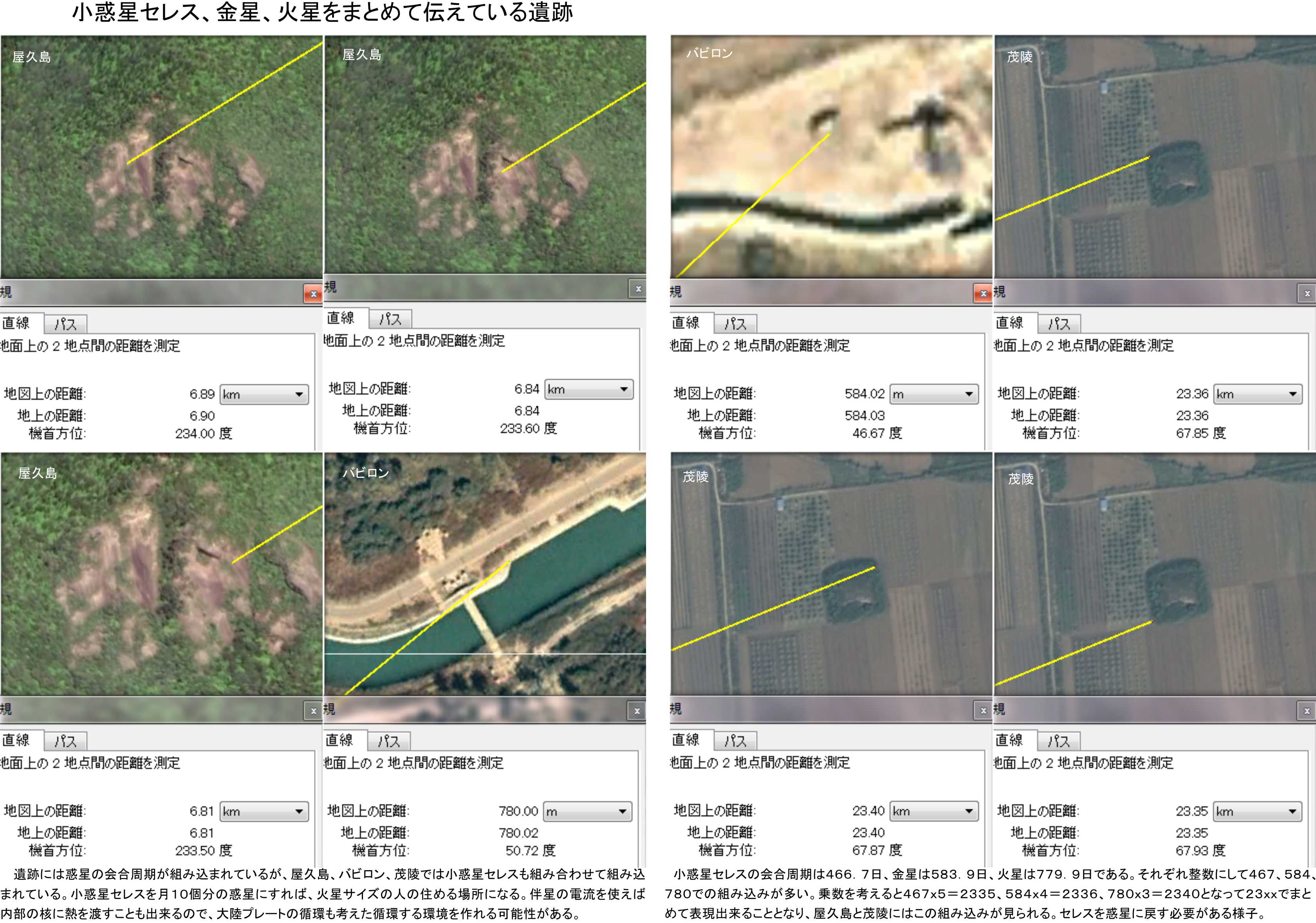 オシレイオンは過去の記事に書いたように、巨石の加工技術をデモンストレーションしている場所になります。467日の会合周期を20倍して9340kmにすることで、小惑星ケレスに技術を適用して元の惑星に戻すことを伝えているのかも知れません。