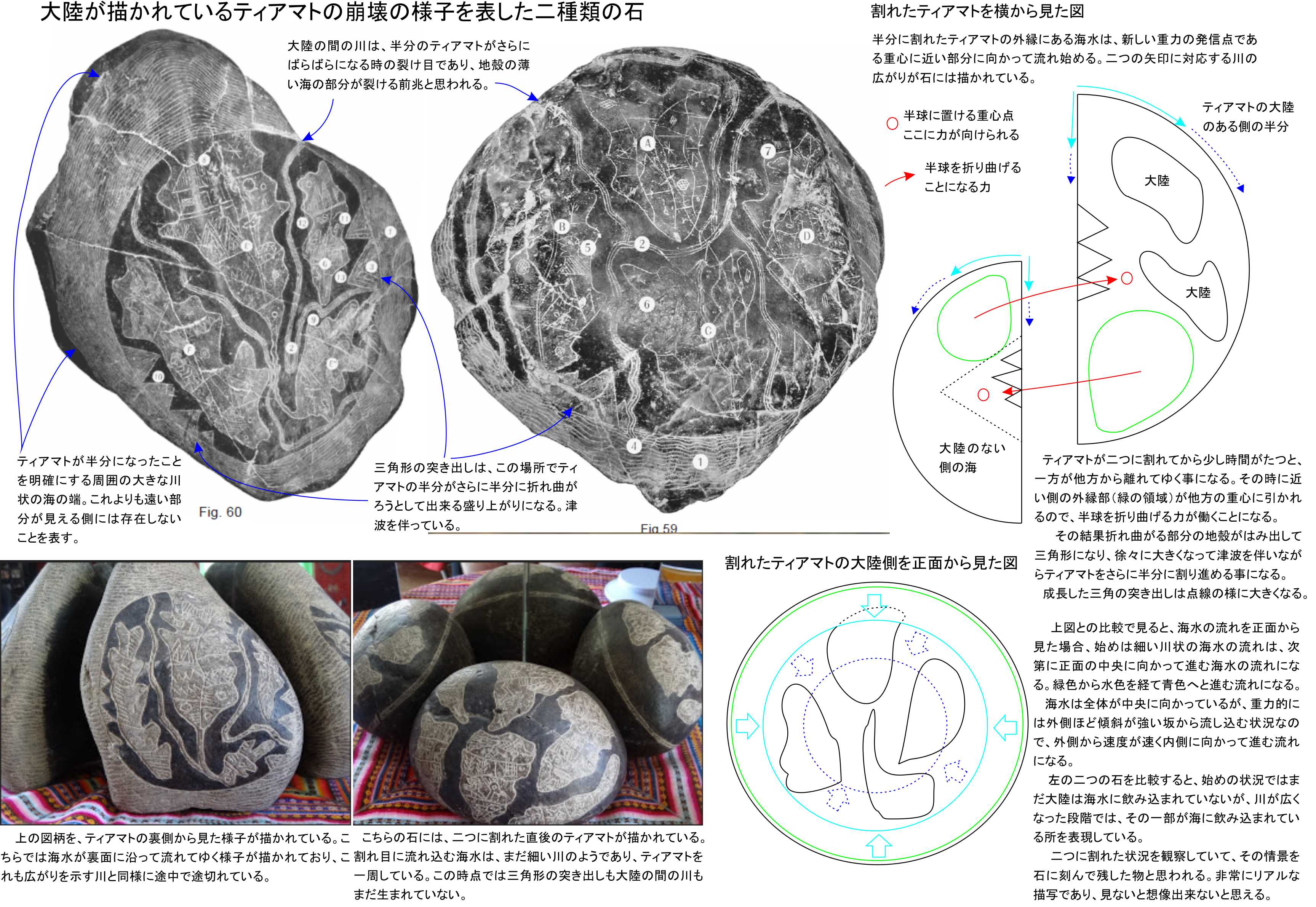 この二つ目の石を見て、これらの石の描いている物の意味が分かりました。二つ目はティアマトが割れた直後、一つ目はその後しばらくしてその半分がさらに半分に割れようとしている所です。
