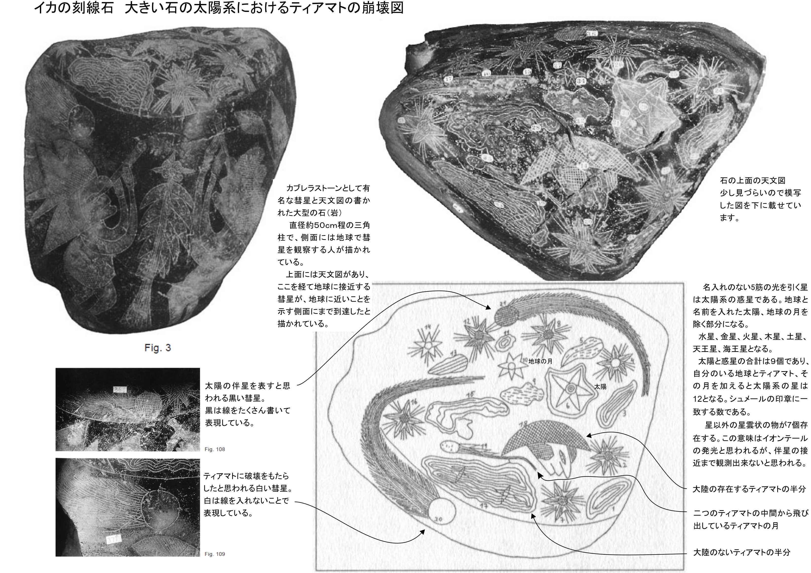 グリーンランド海極時代の人々は伴星の出現と彗星の出現により、ティアマトが破壊されたことをイカの刻線石に残しています。この可能性が高いでしょう。恐らくその後に地球にも津波を伴う大きな変化が起きて、人類の健康問題など苦難の時代が始まったことも残したかったのでしょう。