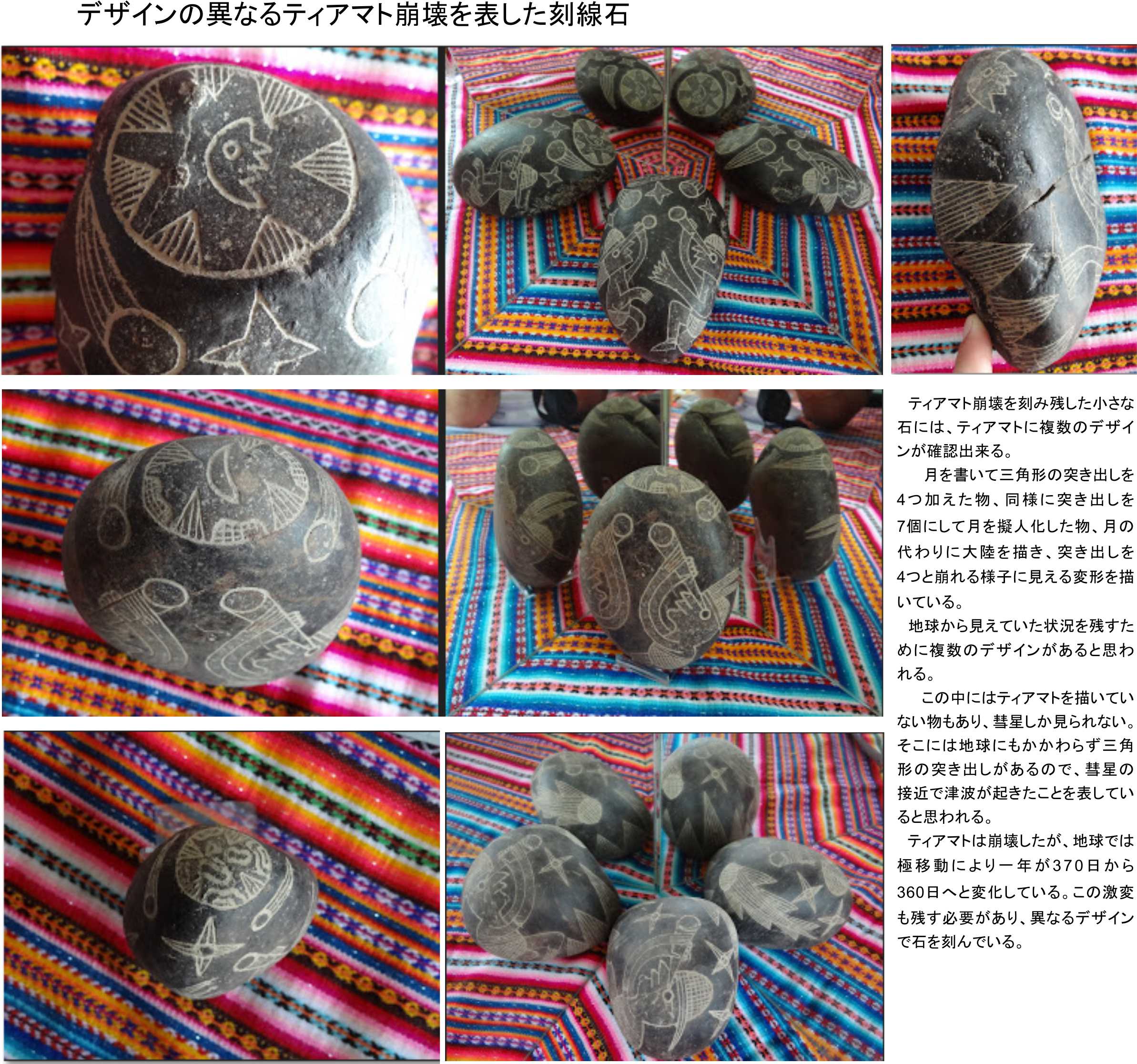 小さな石にもティアマトの崩壊と、2つの彗星状の星が描かれています。こちらにも種類があるのですが、これはティアマトの崩壊する様子を分かりやすく書いたバリエーションでした。ティアマトの崩壊を後世に残す必要を感じた人々が、たくさんの石にその情報を彫り込んで残したことは間違いないと思います。