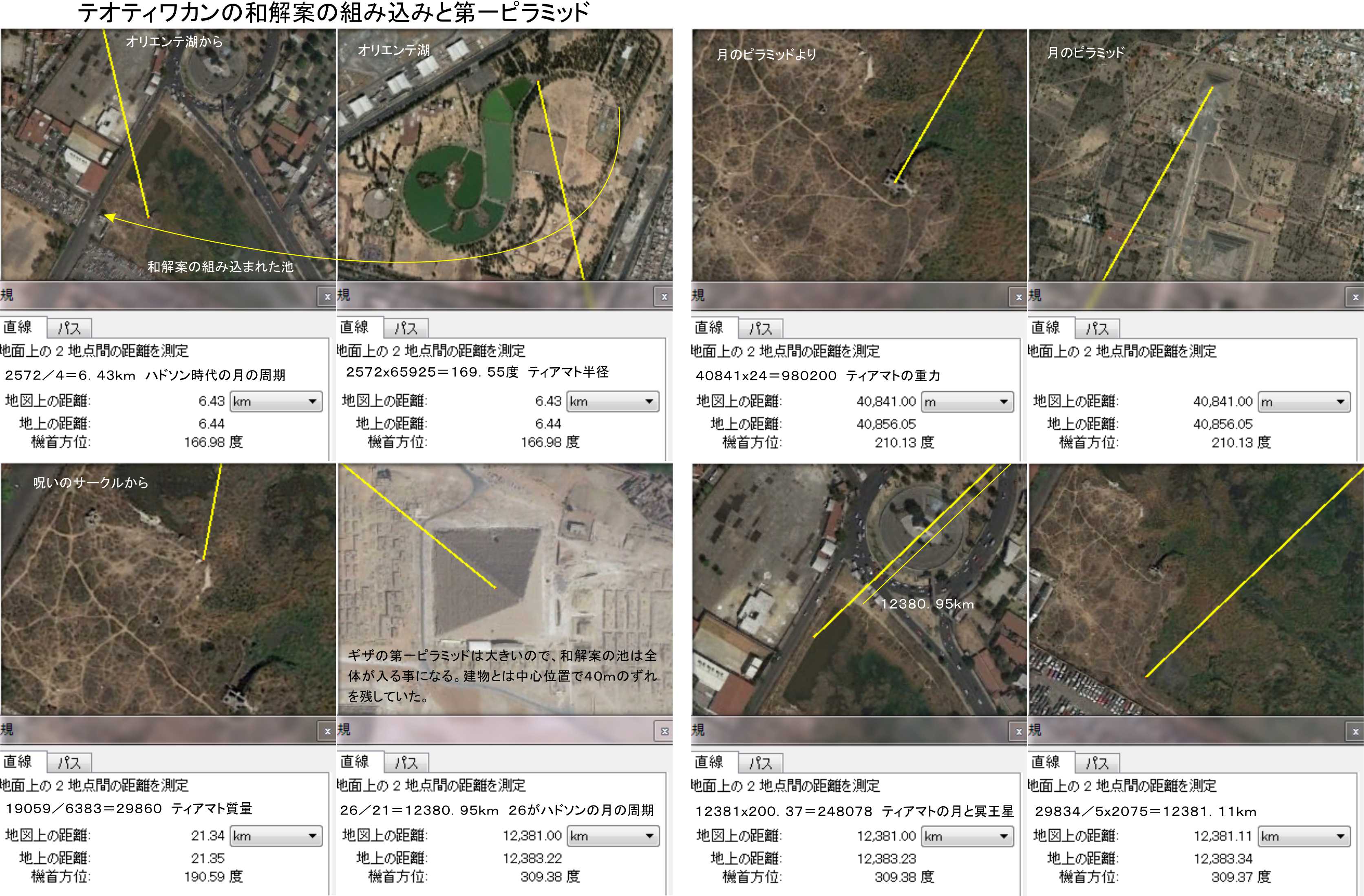 ギザの第一ピラミッドは大きいので、和解案の池は全体が入る事になる。池の建物とは中心位置で40mのずれを残していた。