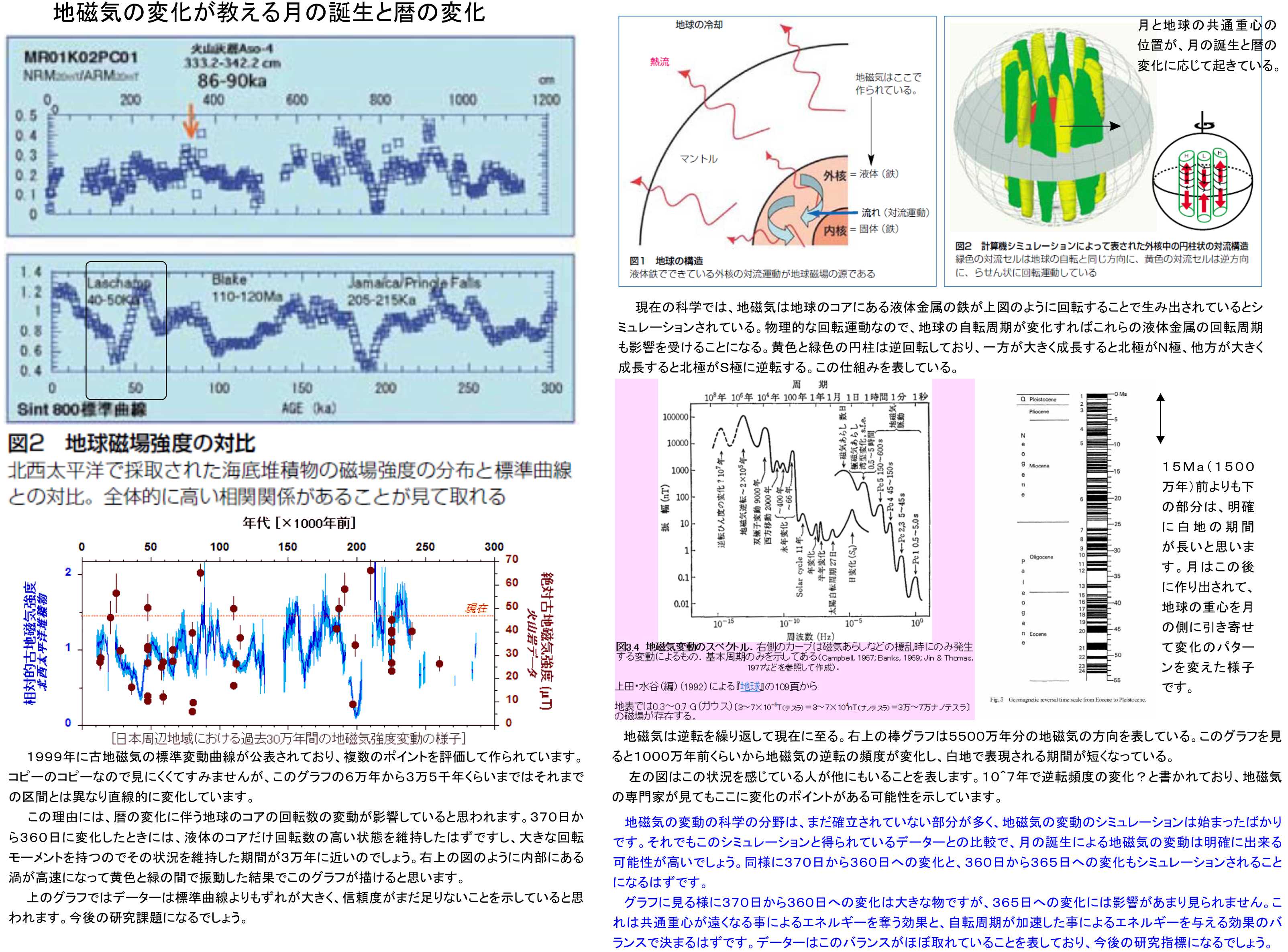 現状では8万年よりも新しい時代においてデーターが統計的評価に足りないのですが、この部分は時間と共に正確になると思います。地磁気の変動パターンが月の誕生後に変化したことは、スーパーコンピューターのシミュレーションレベルですが、こちらも明確になると思われます。
