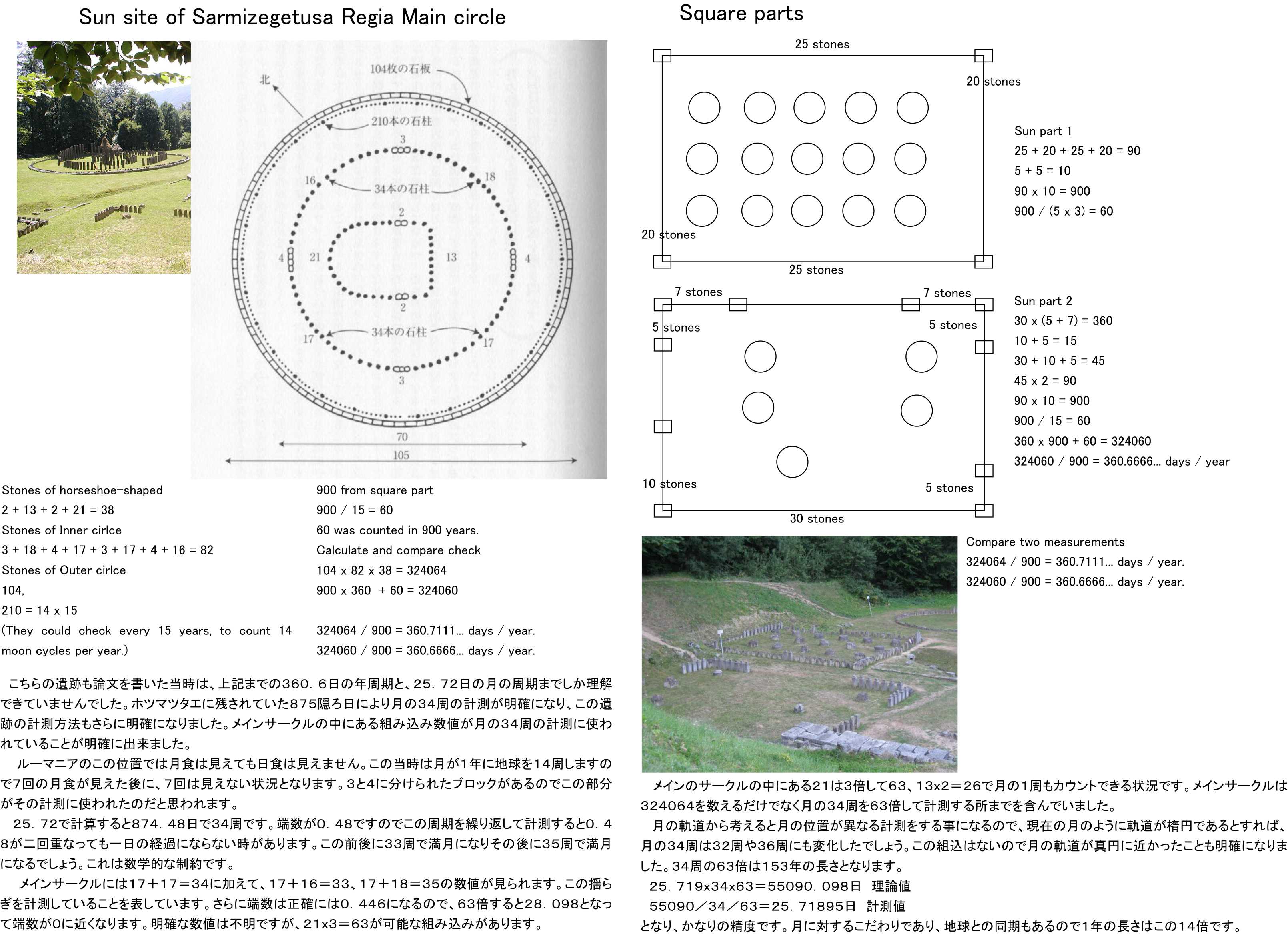 この種の数値の組み込みに可能性のある事は当時から分かっていたのですが、その先に踏み込むには何らかのデーターが必要でした。ルーマニアのサルミジェゲトゥサ・リージアの遺跡には高さの異なる石柱や、回転しながら利用したと思われる石盤が残されています。これらを詳しく調べる機会があればもう少し前進できる可能性があるかも知れないと感じていたところでした。