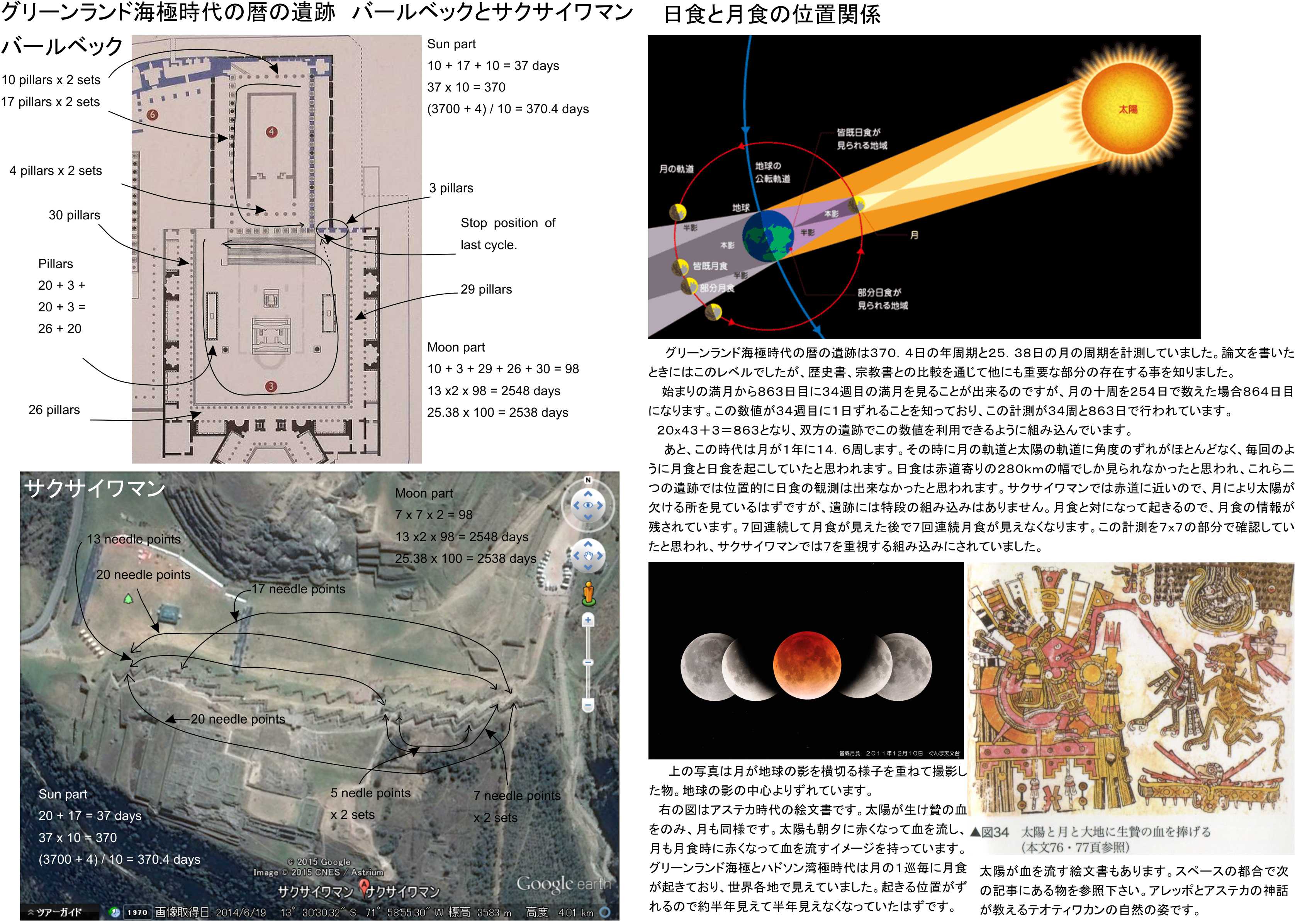 あと、この時代は月が1年に14.6周します。ハドソン湾極時代のようにその時に月の軌道と太陽の軌道に角度のずれがほとんどなく、毎回のように月食と日食を起こしていたと思われます。
