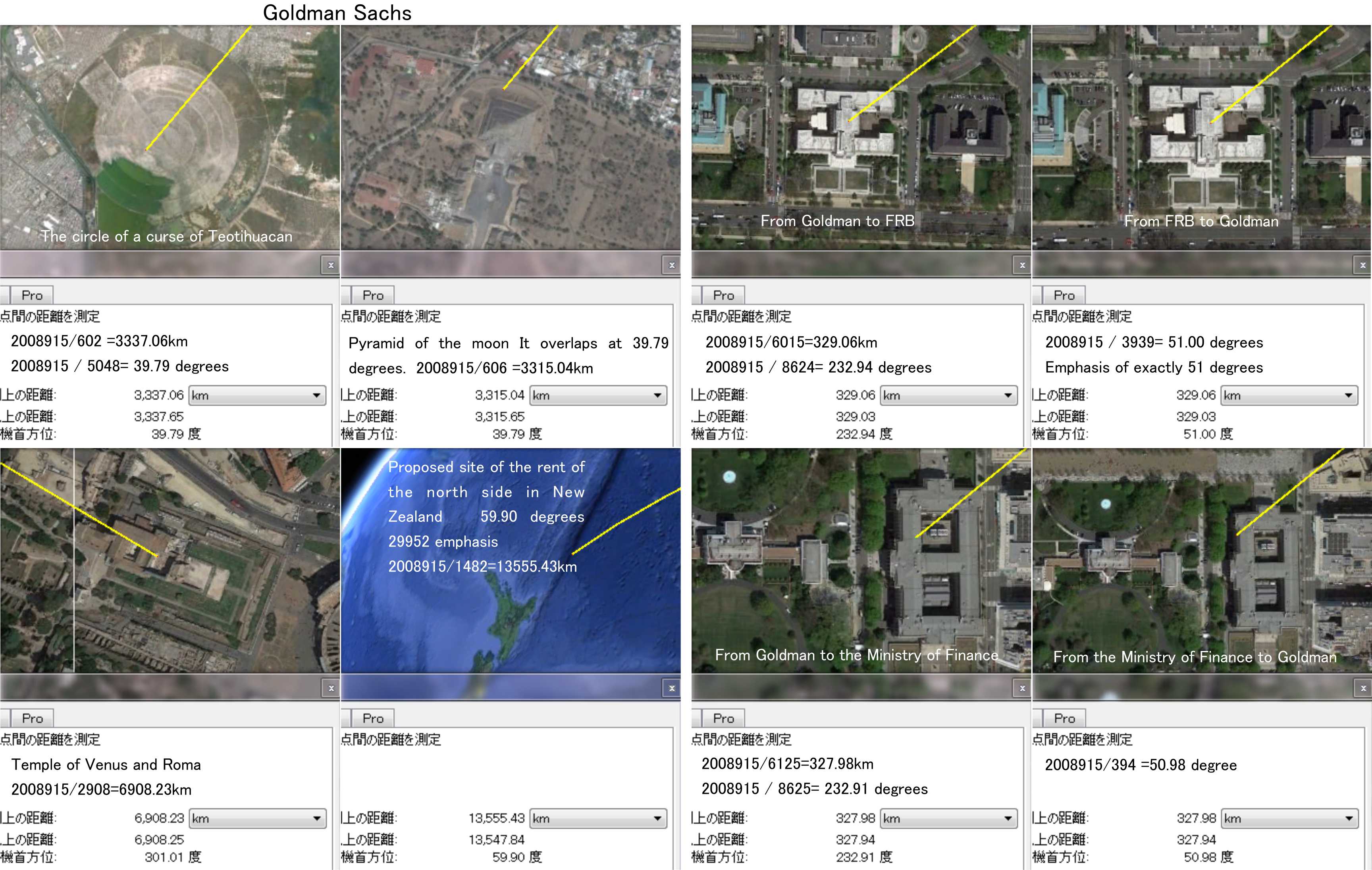 遺跡において51度丁度で表せる強調は、ガイトナーNY連銀総裁のゴールドマン・サックスへの協力と思われます。財務省にはゴールドマン出身のポールソン長官がおり、この二人の関与が未来を決めたと思える状況です。遺跡における強調はリーマンの方が強いです。
