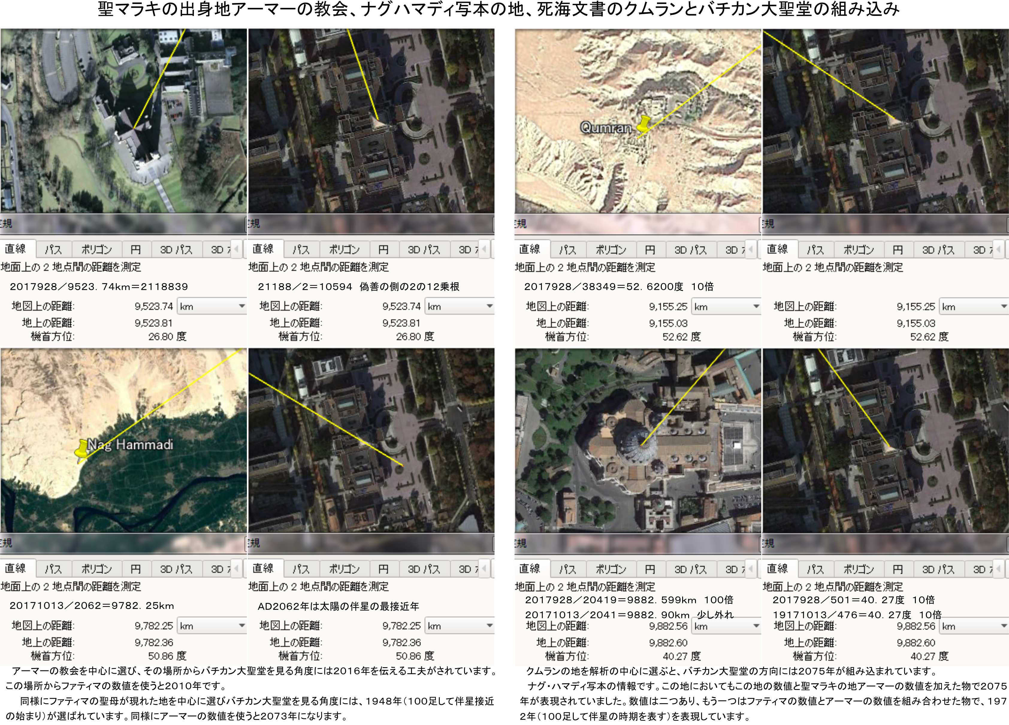 2017513にもファティマの聖母の100周年の始まりがあったのですが、この時は何も起こされることなく現在につながっています。偽善の側には様々な計画があったのですが、遺跡に組み込まれている計画はうまく進む事が出来ていない様子です。このHPに過去公表してきた通りであり、2017823の六芒星の望む宗教紛争など、20171013におけるメギドの丘での核戦争への流れは、今のところ目に見える物にはなっていない状況です。